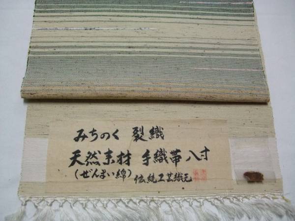 秀匠 ☆ 在庫品 ぜんまい綿 手織り八寸名古屋帯 伝統工芸創作作品 05501