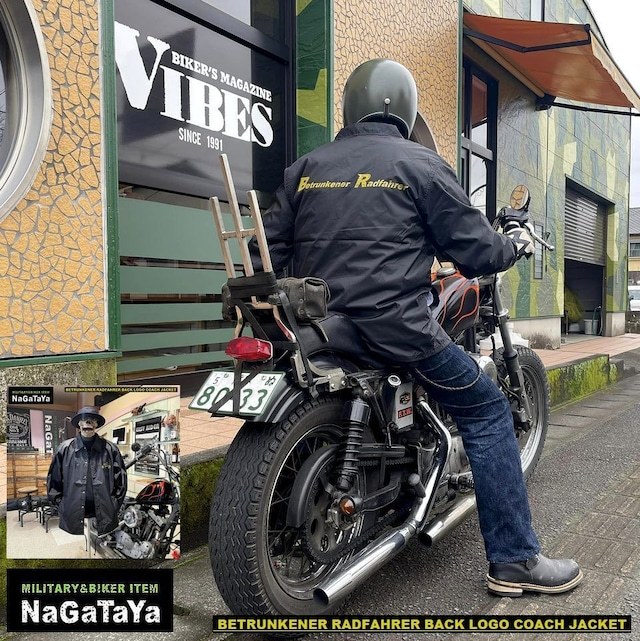 NEW クラブスタイル BETRUNKENER RADFAHRER ベェトォンナ ラドファ バックロゴ ナイロン コーチジャケット ブラック 黒 XLサイズ BIKER