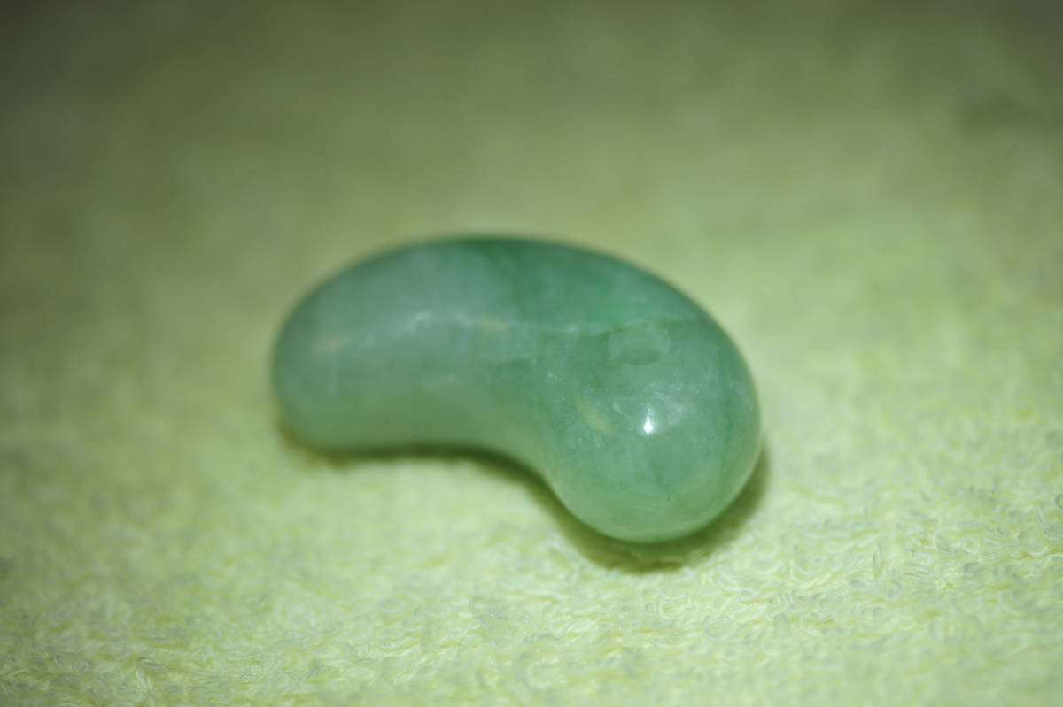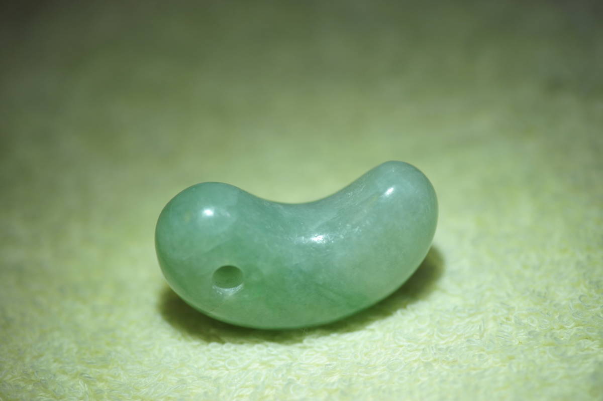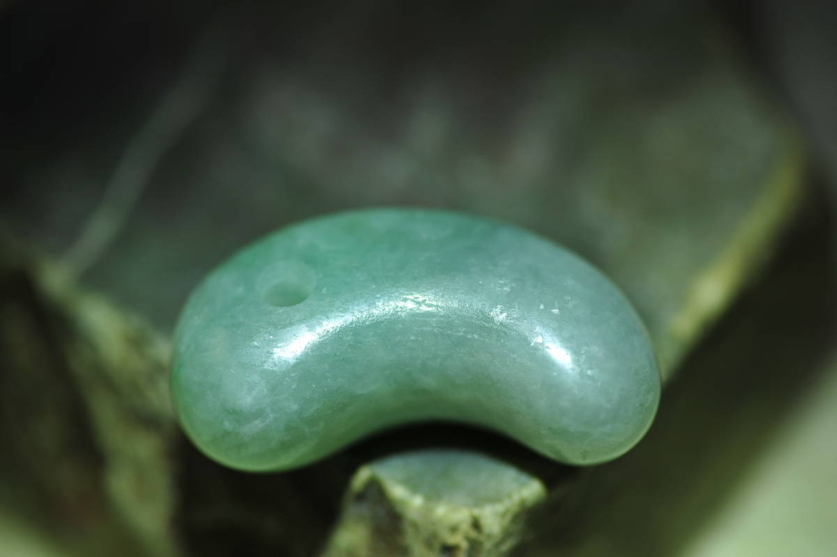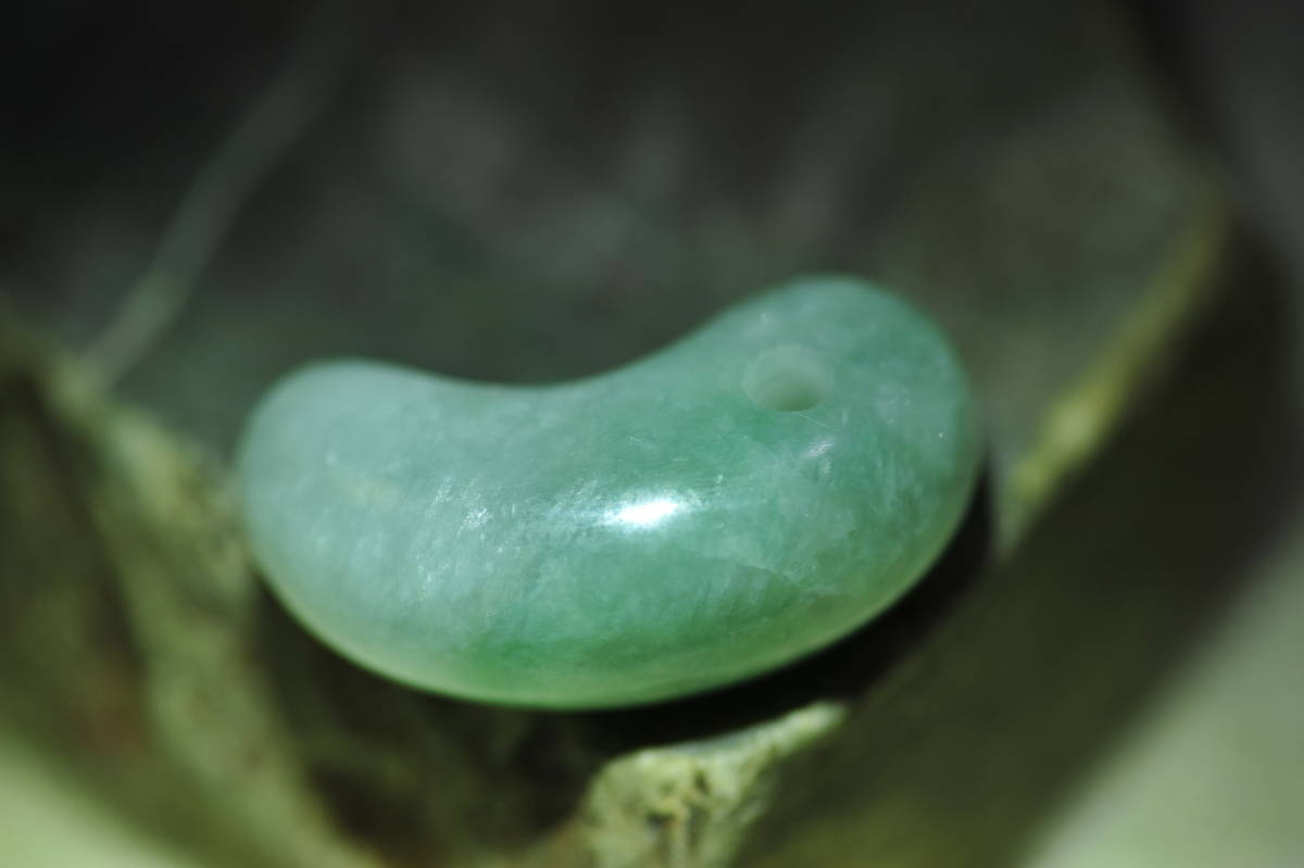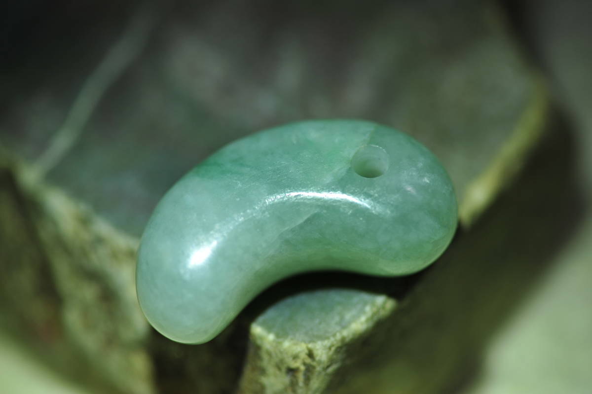 ミャンマー産翡翠を使って、日本国内で製作された翡翠の勾玉です。