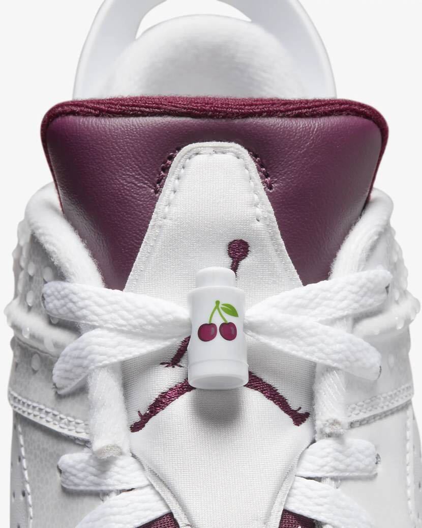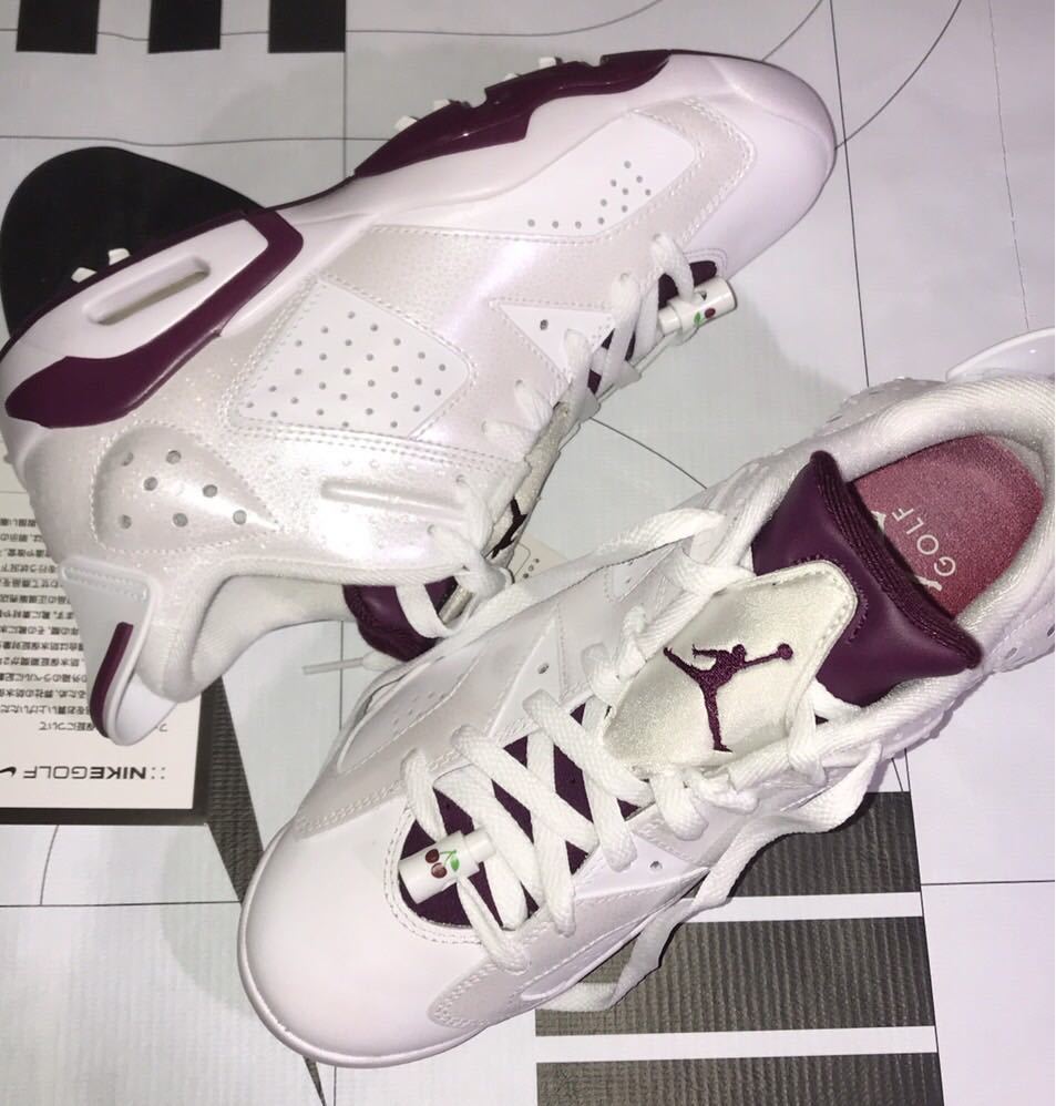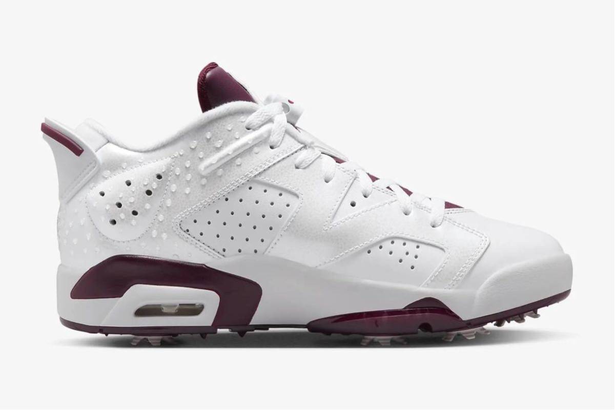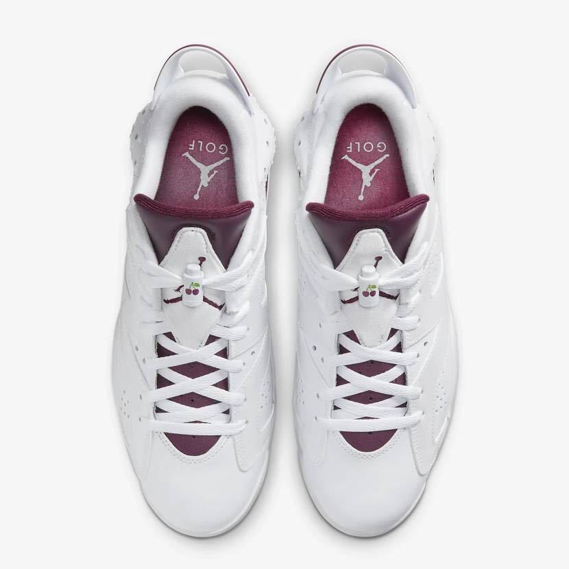 今作は、名作と呼び声高いエアジョーダン6を、ゴルフ用のソールへとアップデートした新作だ。カラーは、ホワイトをベースに深みのあるボルドーをアクセントにあしらった配色となっている。バスケットボールシューズとしてのシルエットはそのまま、ゴルフシーンで活躍できる一足に仕上がった。