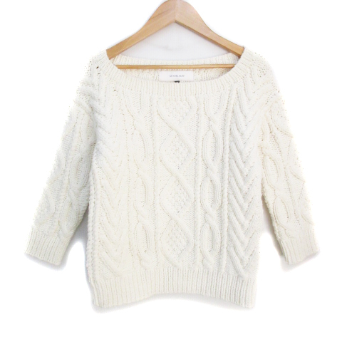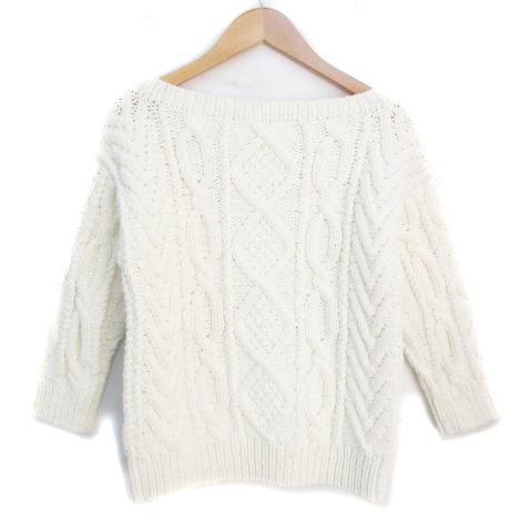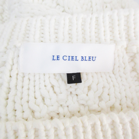 ルシェルブルー LE CIEL BLEU ニット セーター 七分袖 ラウンドネック ケーブル編み F 白 ホワイト /FF16 レディース