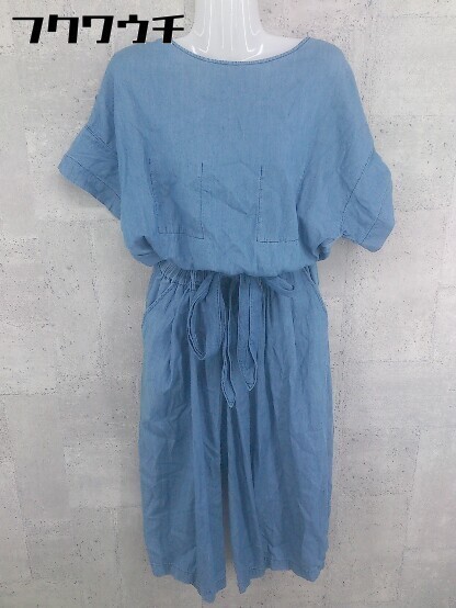 ◇ ◎ nano universe the first floor ウエストゴム 半袖 オールインワン サイズ36 ライトブルー レディース