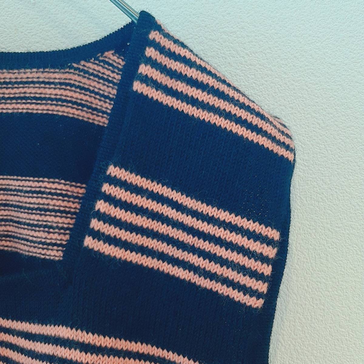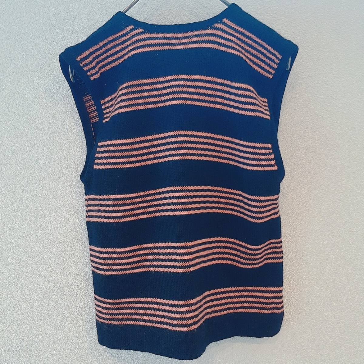 美品 ハンドメイド トップス ノースリーブセーター ボーダー 黒×ピンク レディース |