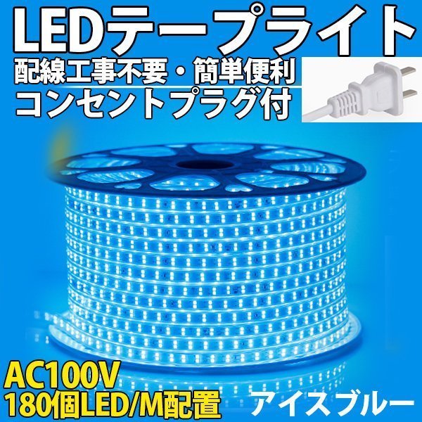 防水防塵 LEDテープライトPSE認証済み AC100V 40M 180SMD/M 配線工事不要 簡単便利 アイスブルー 間接照明 棚照明 二列式