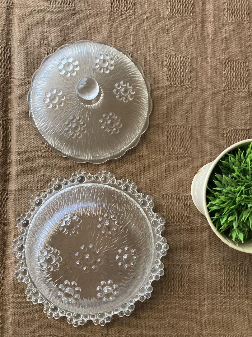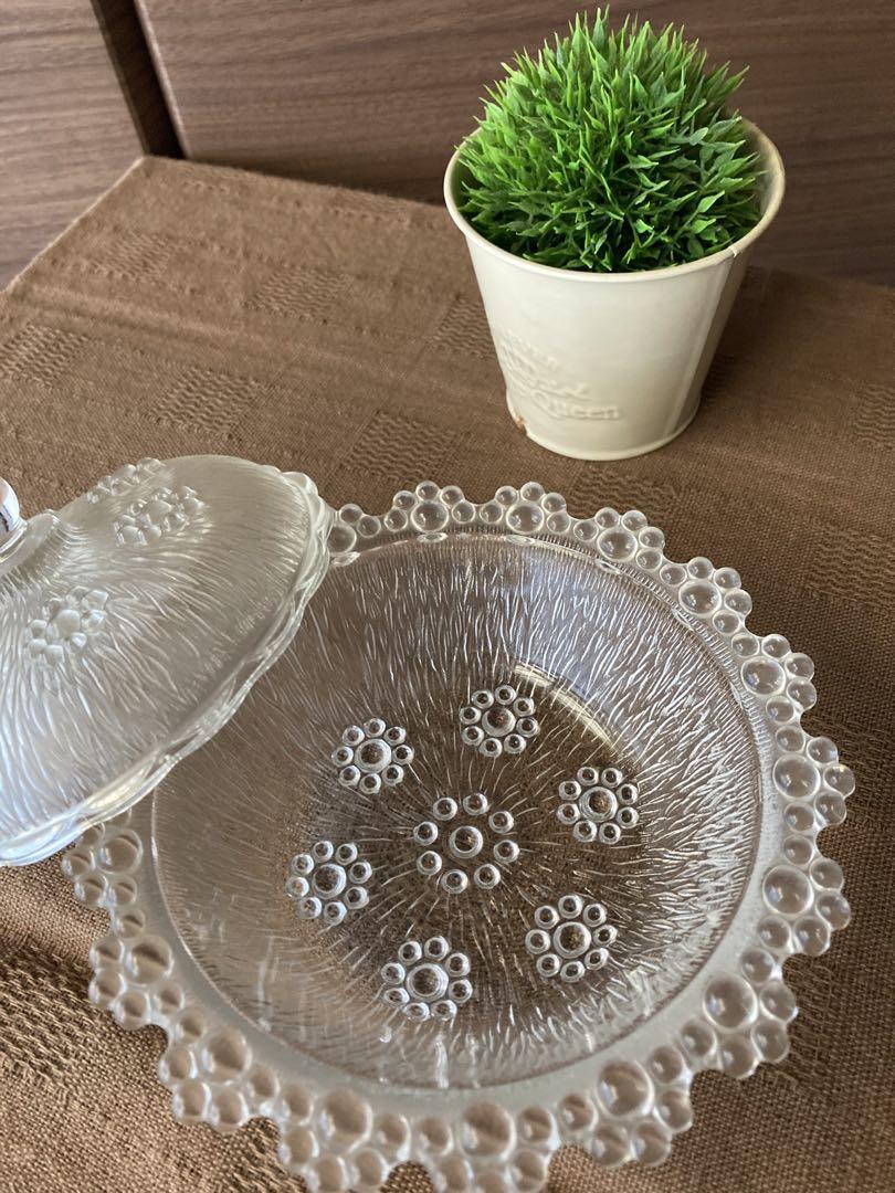 アデリアグラスのアデリアピコット ふた付き小鉢になります。 レトロ調アンティークなお品です。 キャンディを入れたりフルーツを入れたり 蓋つきなのでとても重宝致します。 直径約15cm 高さ約4cm (蓋を除く) こちら1点物です。 | |||