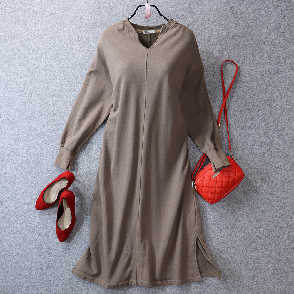 クラフト|CRAFT STANDARD BOUTIQUE スキッパー 度詰め裏毛 裾スリット ロング ソフトシンプル ワンピース モカ ノンストレス マキシ FREE | |||