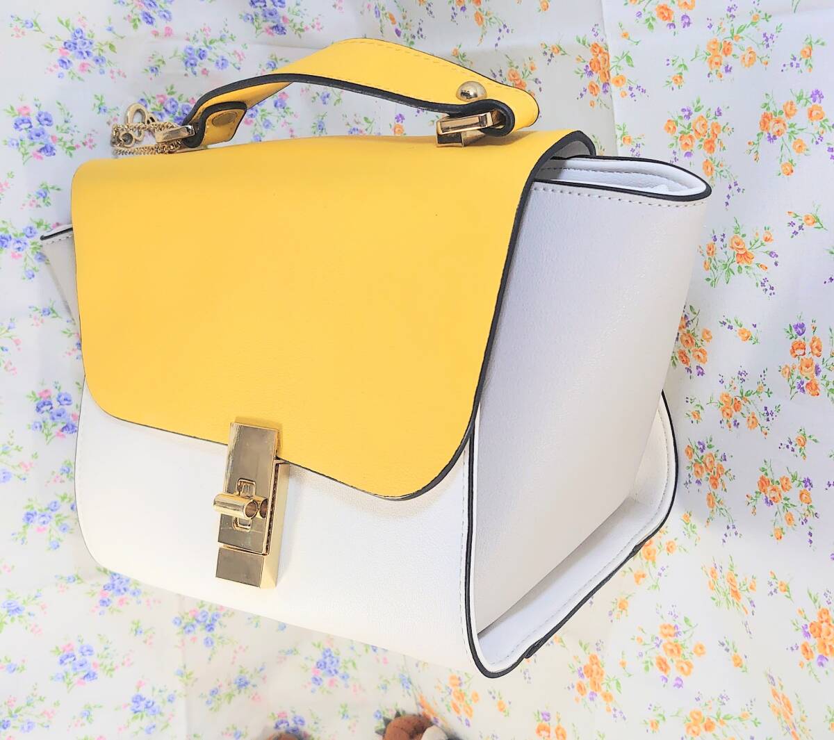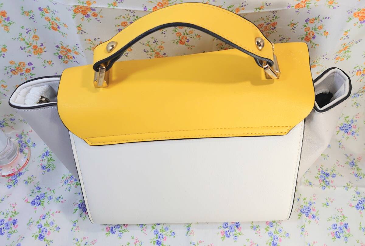 黄色と白色で可愛く、内ポケットは片面2個、もう片面1個付いて収納に便利です。