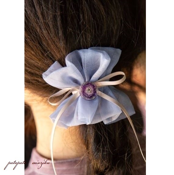 まとめ髪のゴムに差し込んで、レトロで華やかな雰囲気に。