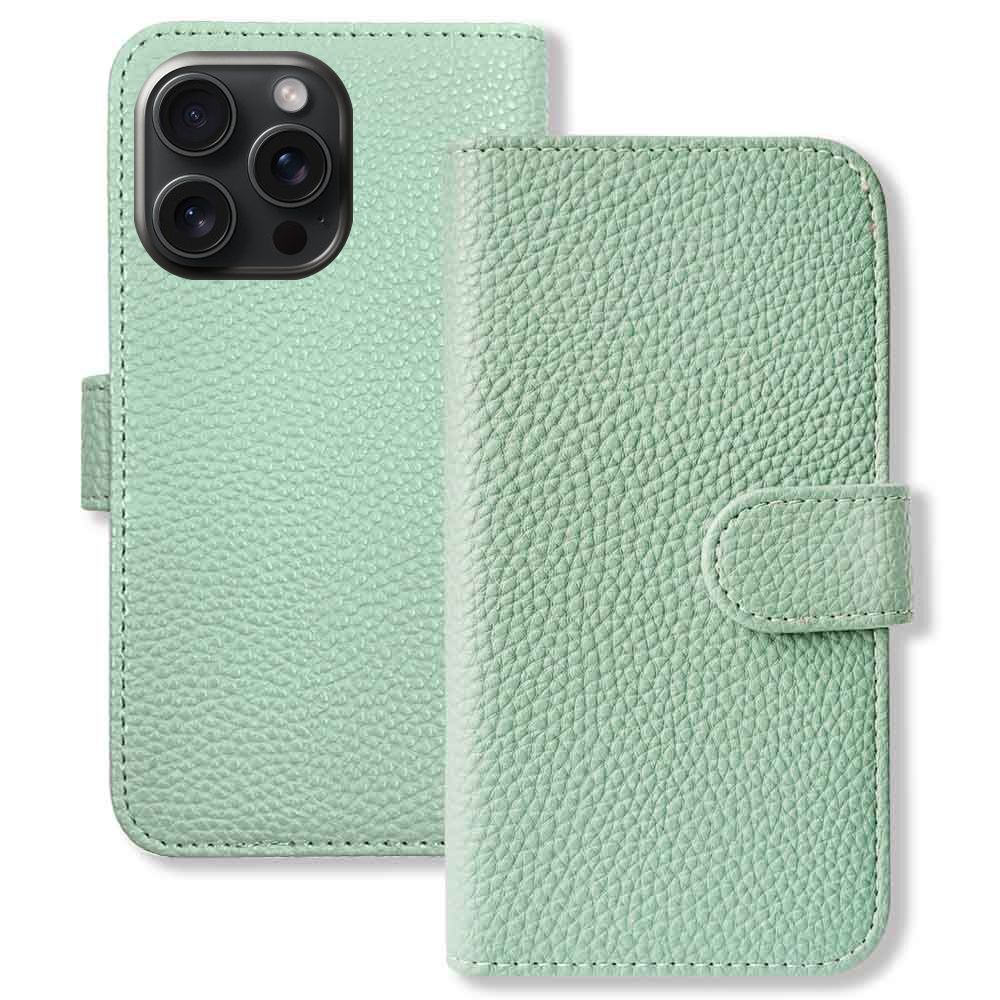 iPhone15 Pro Max アイフォン15プロマックス スマホケース(手帳アイスグリーン)カバー 手帳 カード収納 ニュアンスカラー くすみカラー