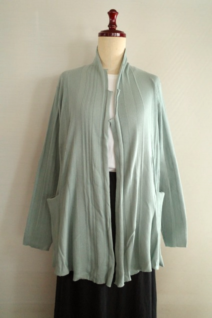 Babaghuri ババグーリ ランダムリブ コットンシルクカーディガン ニットジャケット 羽織 灰セージ/JURGEN LEHL ヨーガンレール