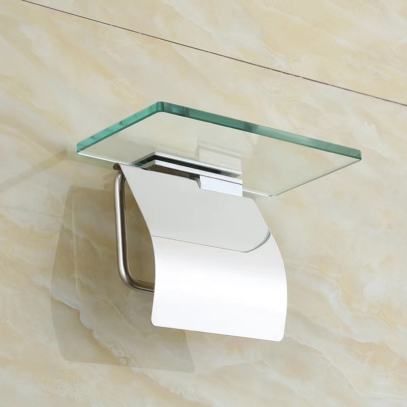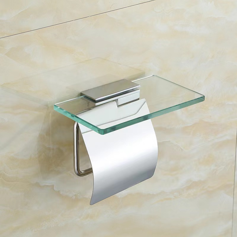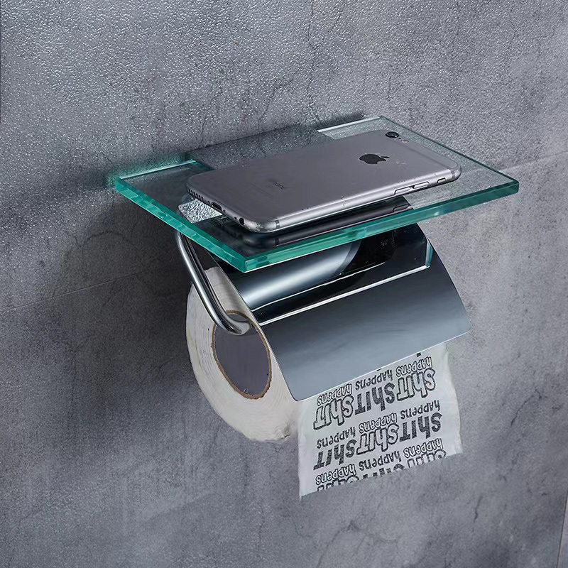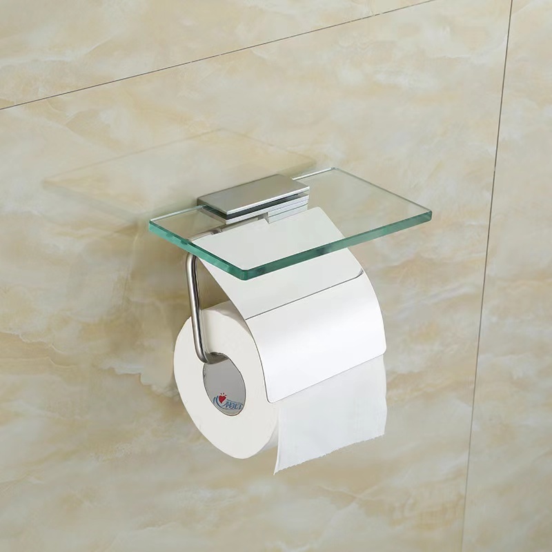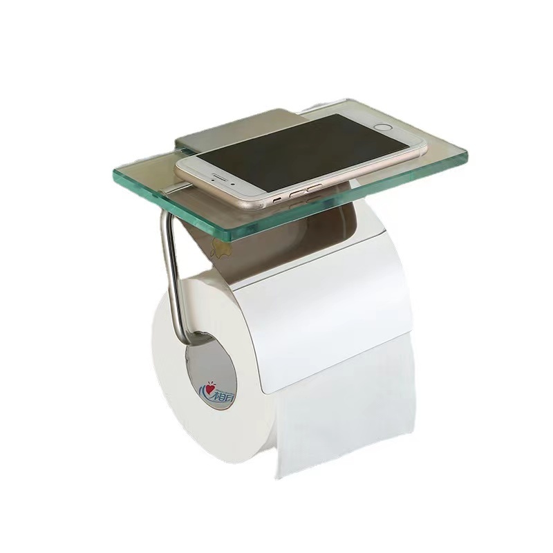 モノを置くことができる便利なガラス棚が付いたトイレットペーパー収納ホルダーです。シンプルなデザインのため、取り付けるトイレの雰囲気を選びません。携帯電話や単行本など、トイレに持ち込んだ身の回りの品を置くことができとても便利です。