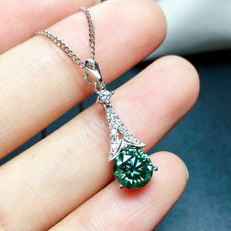 グリーンダイアモンド すぐにお届けできます。ネックレス クラウンスタイルラウンド 宝石 シルバーチェーンペンダント