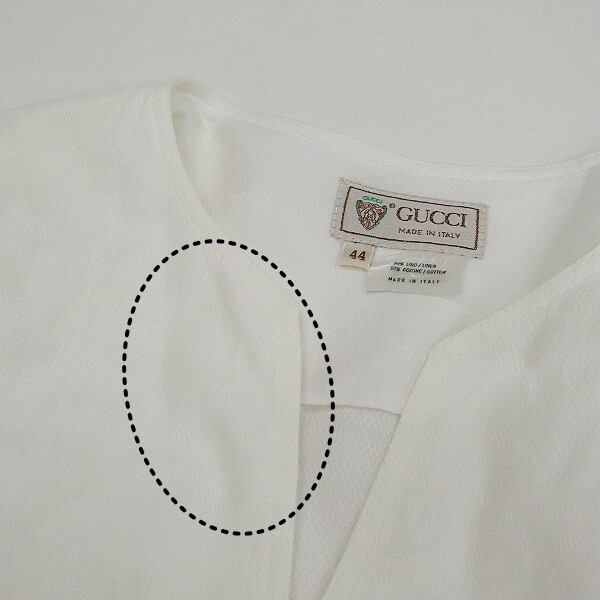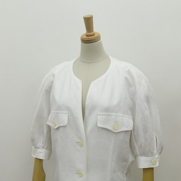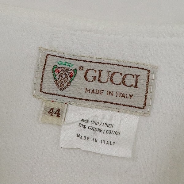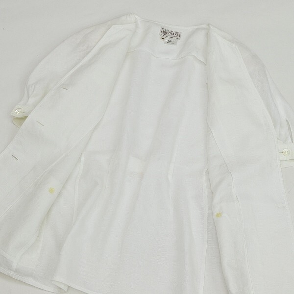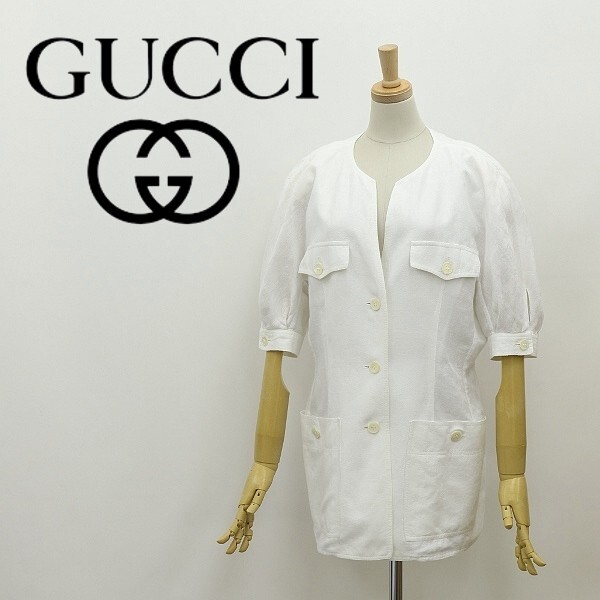 ヴィンテージ◆GUCCI グッチ リネン&コットン 花柄 ショートスリーブ ノーカラー ジャケット 白 ホワイト 44 | |