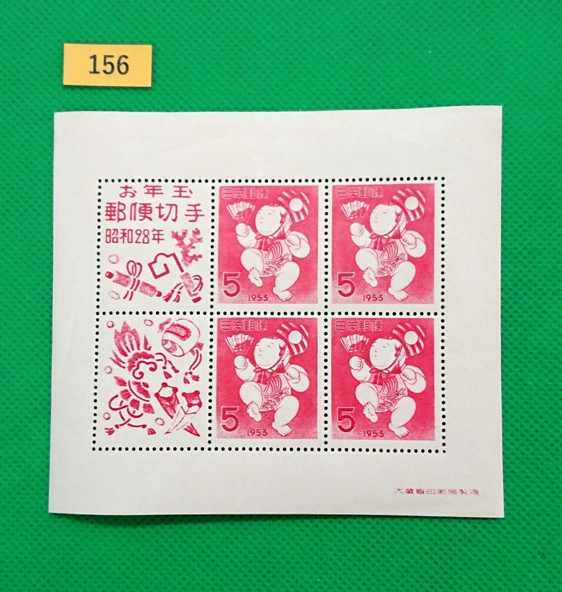 三番叟人形/お年玉年賀シート/小型シート/昭和28年用/NH/極上美品/シミ無/糊艶良好/カタログ価格18,000円/№156