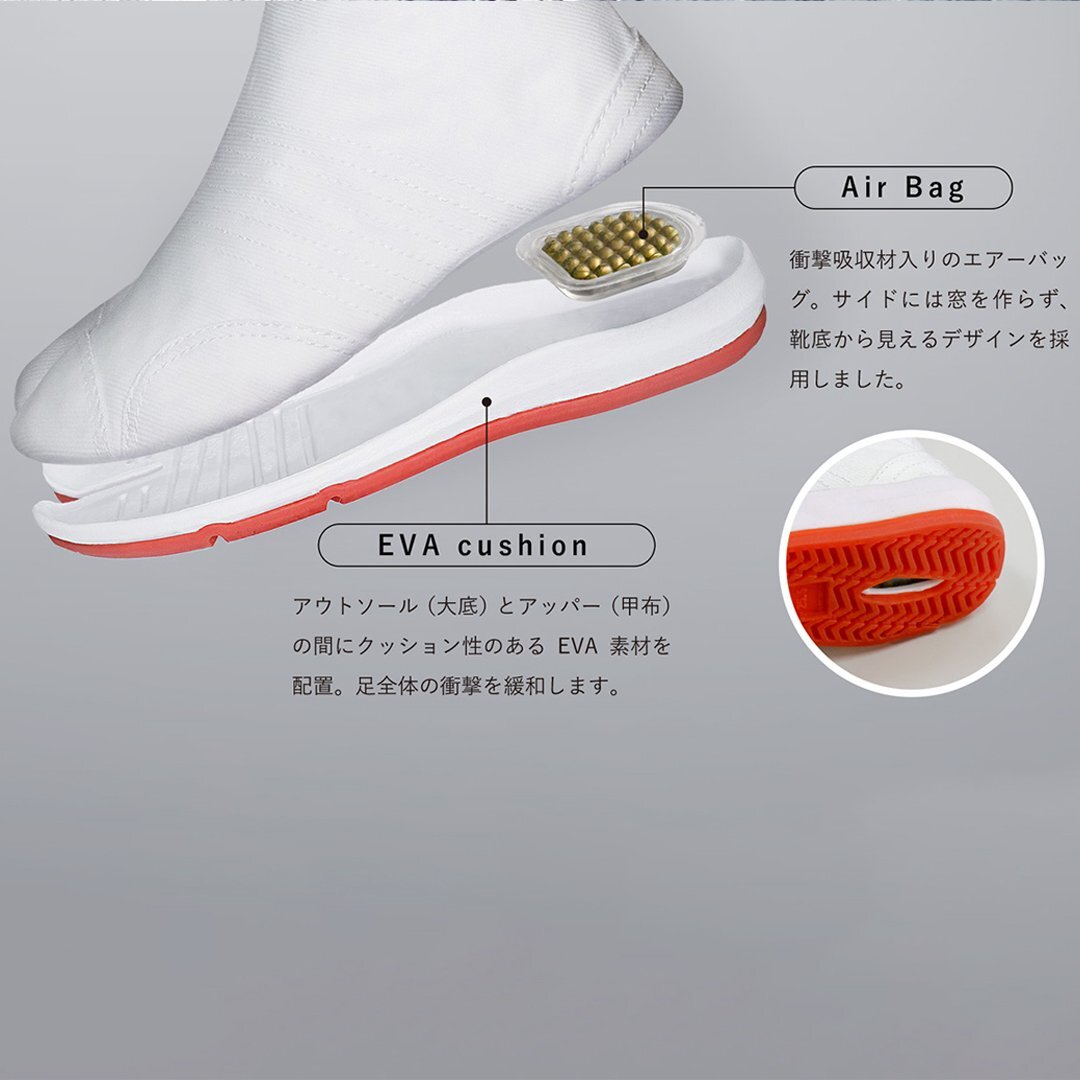 EVAミッドソールとエアバッグにより抜群の衝撃吸収を実現。