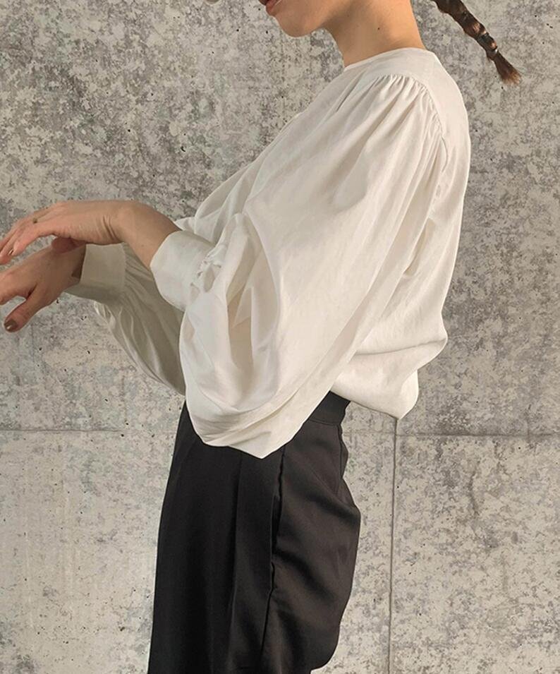 春新作 ブラウス オシャレ レディース 通勤 大人 ふんわり袖 着痩せ 長袖トップス チュニック★白/Lサイズ LB474