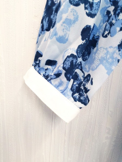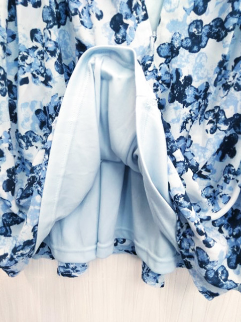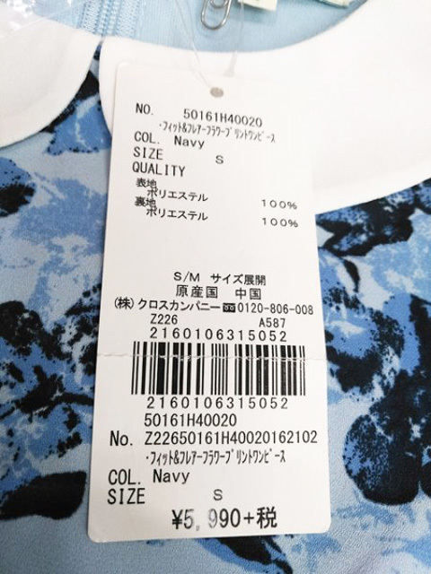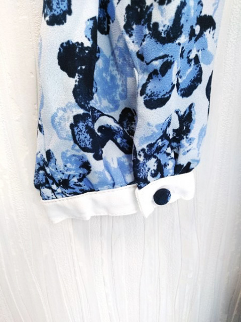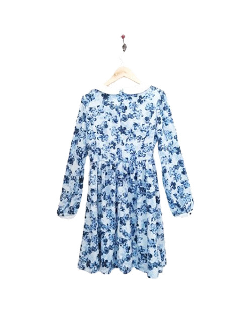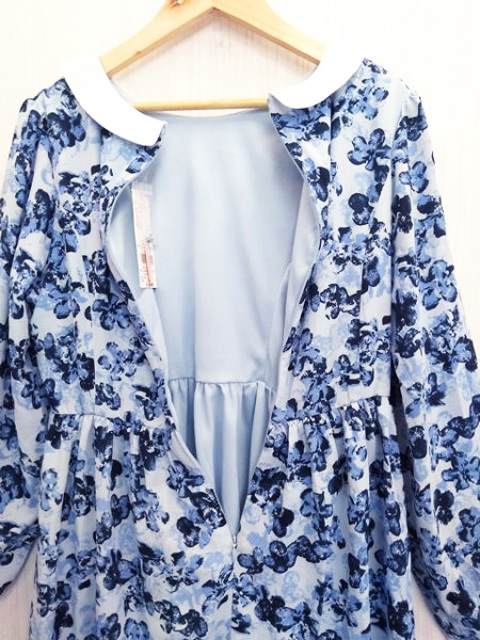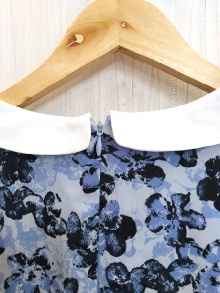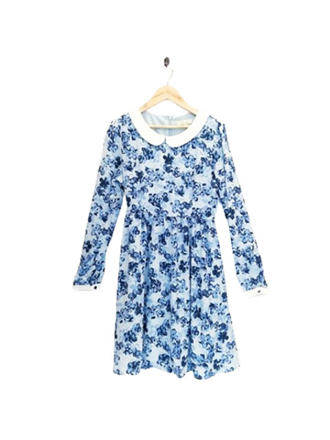 ap1216 ○送料無料 新品 earth music&ecology アース レディース 長袖 ワンピース Sサイズ ブルー 花柄 丸襟 切り替え 定価5,990円