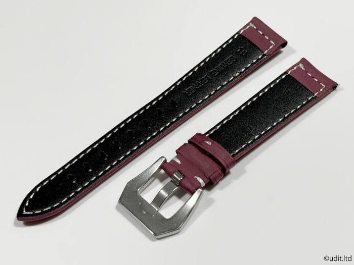 ラグ幅:18mm レザーベルト 腕時計ベルト アースカラー パープル系 ハンドメイド レザーバンド ヘキサゴン尾錠付き LB106