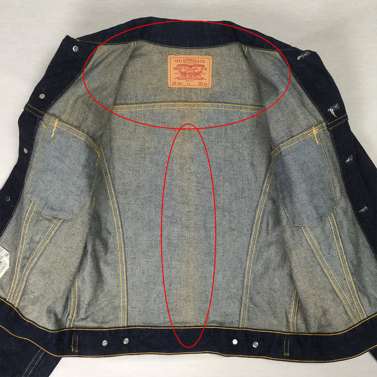 内側の背中部分に若干茶色く変色がありますが、外側には変色はありません。