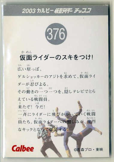 | ◆防水対策 厚紙補強 カルビー 仮面ライダーチップスカード(2003 復刻版) 376番 仮面ライダーのスキをつけ! トレカ 即決 | |