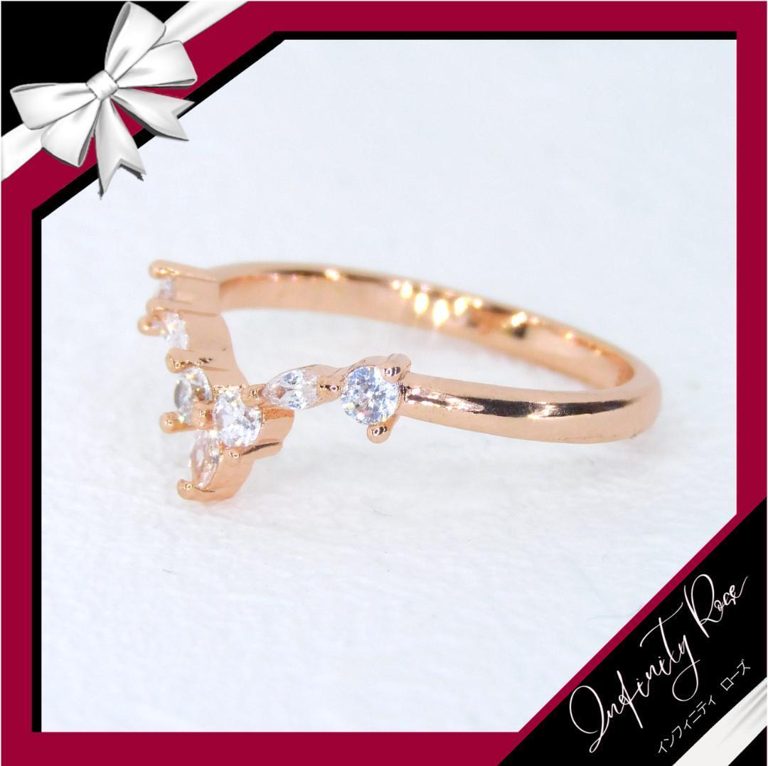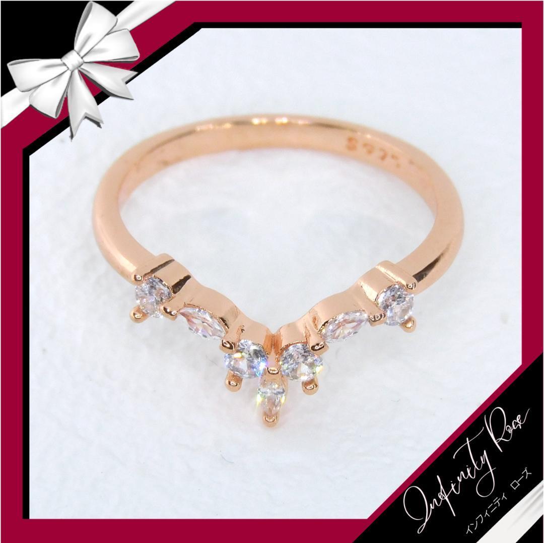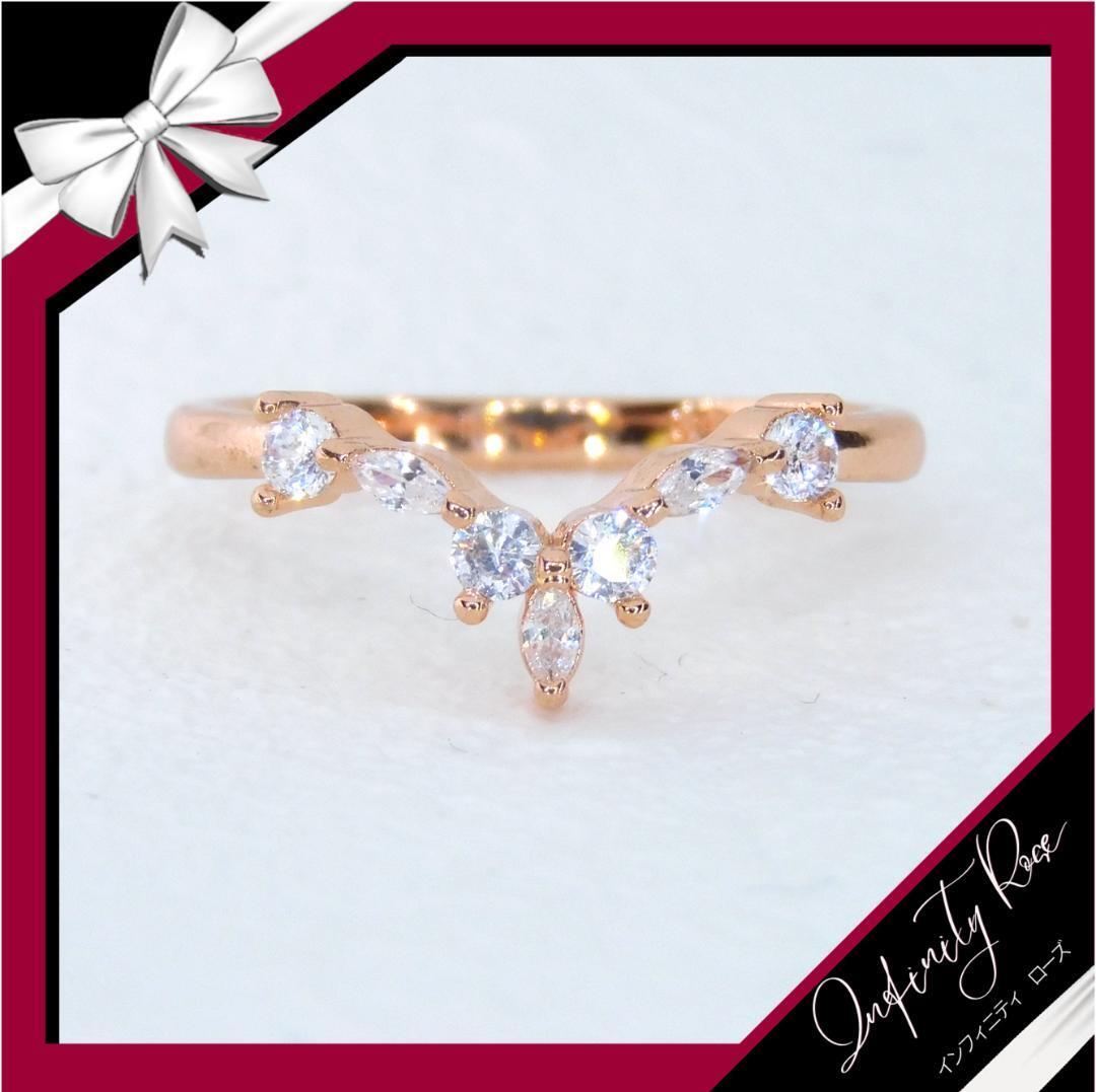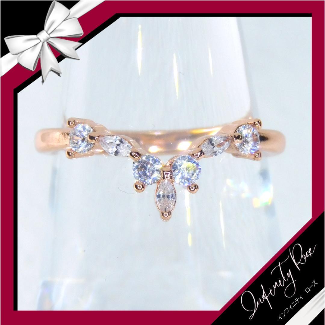 (R066P)12号 ピンクゴールド細身大人ティアラクリスタルリング  爪留指輪