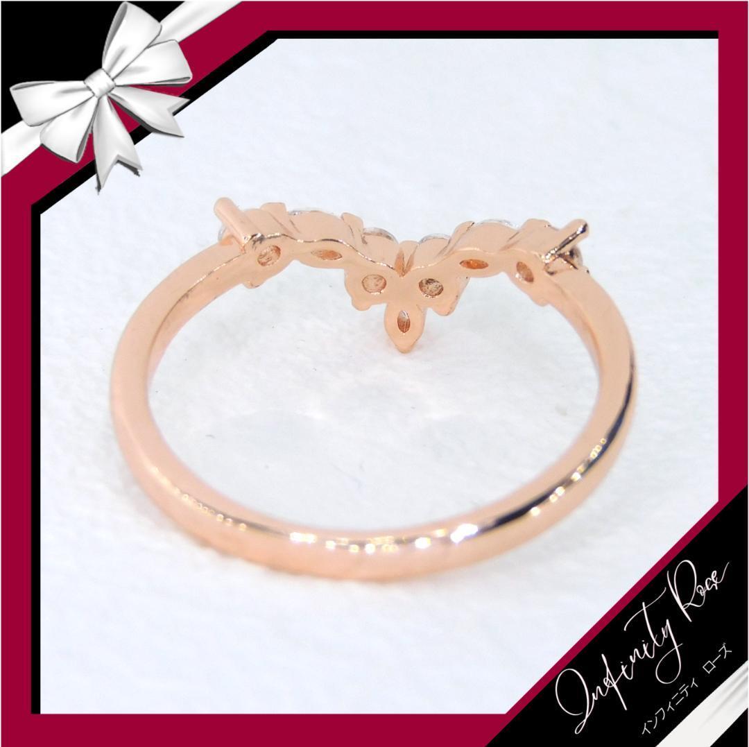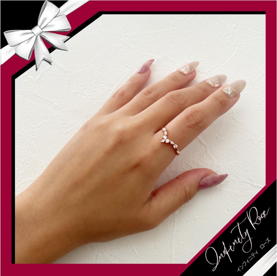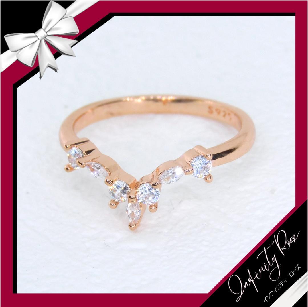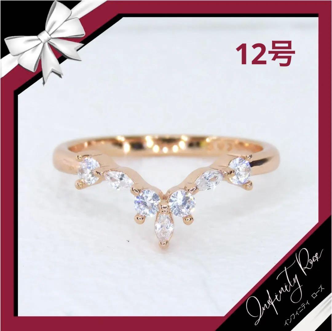 (R066P)12号 ピンクゴールド細身大人ティアラクリスタルリング  爪留指輪