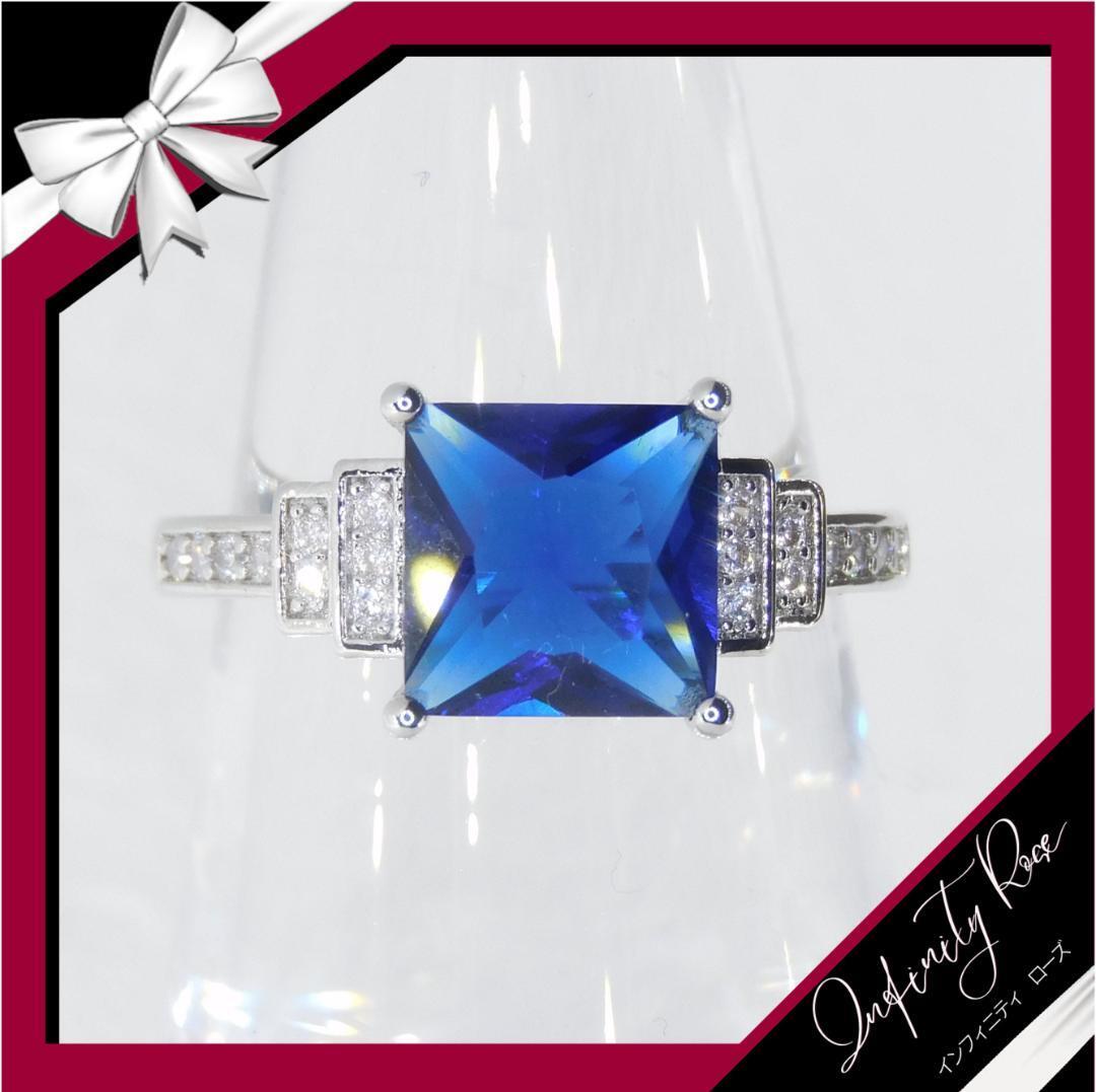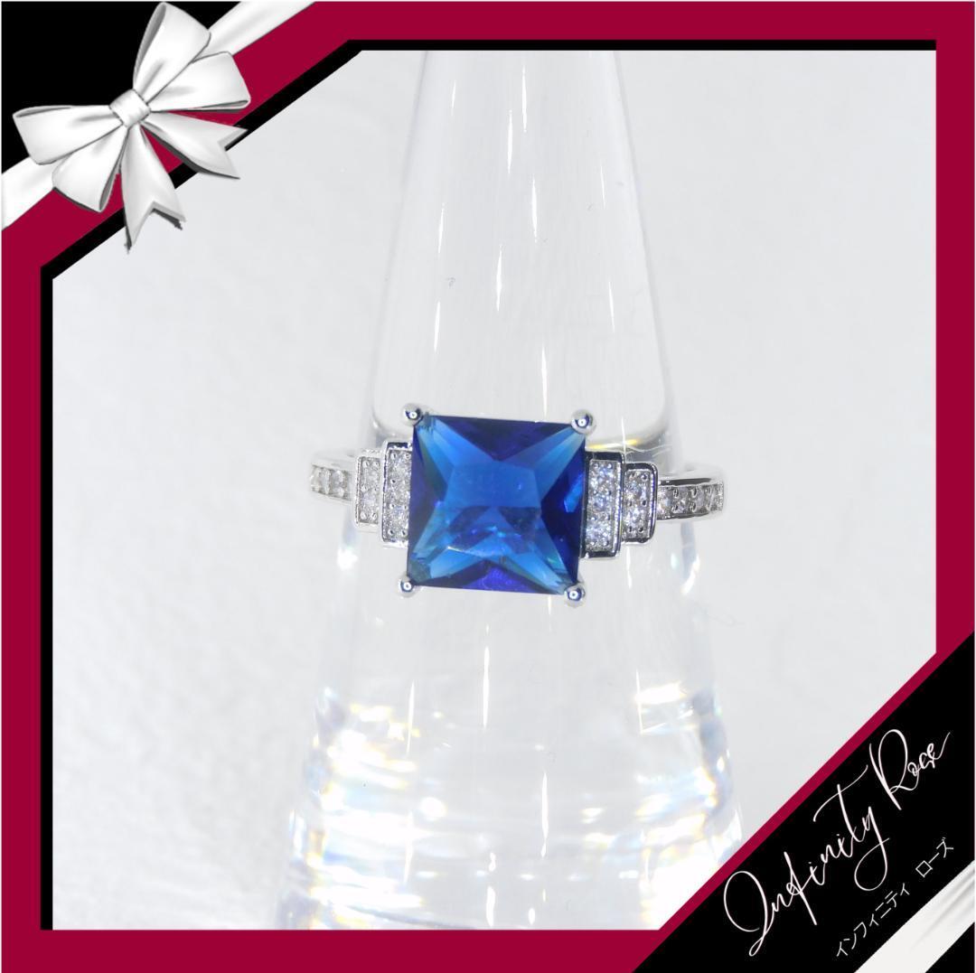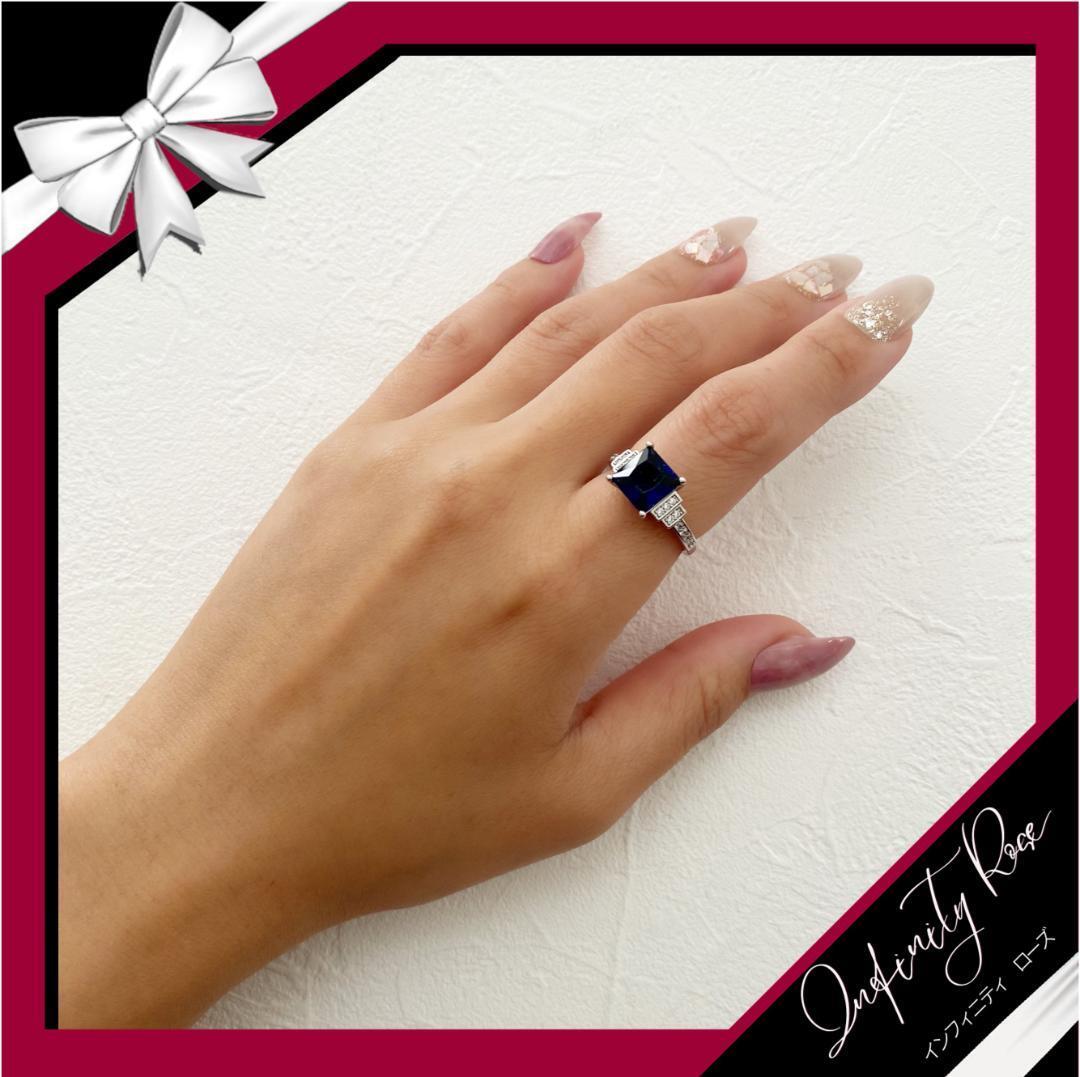 (R065S)16号 シックなダークネイビークリスタルリング  高価爪留め指輪