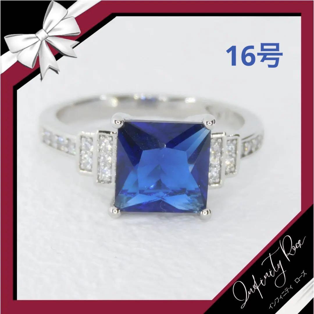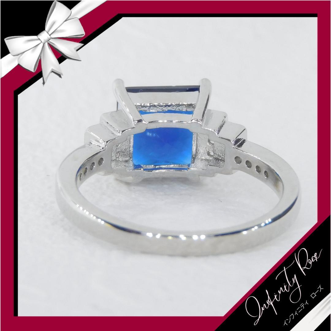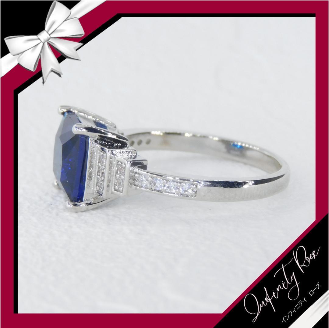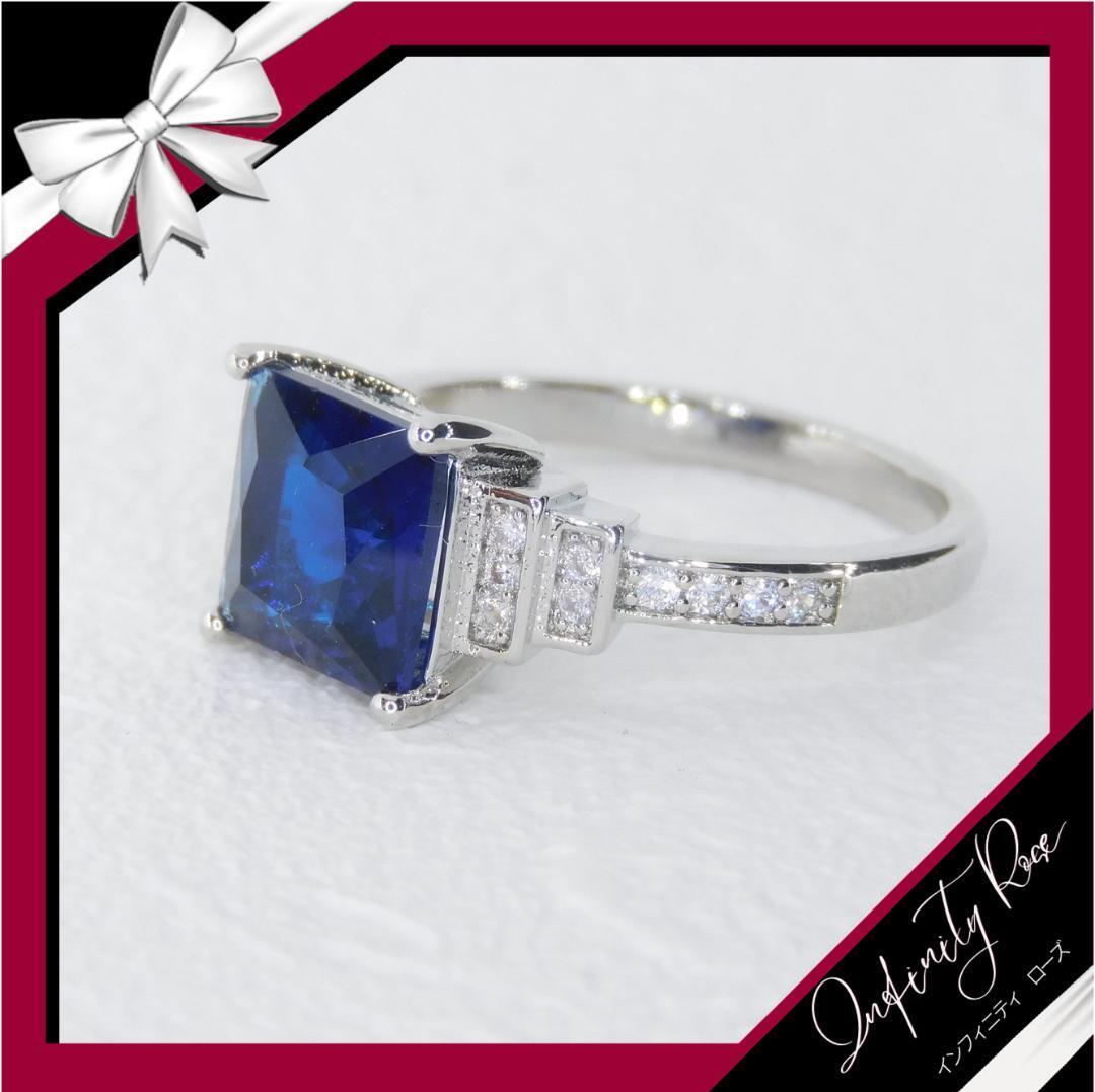 (R065S)16号 シックなダークネイビークリスタルリング  高価爪留め指輪