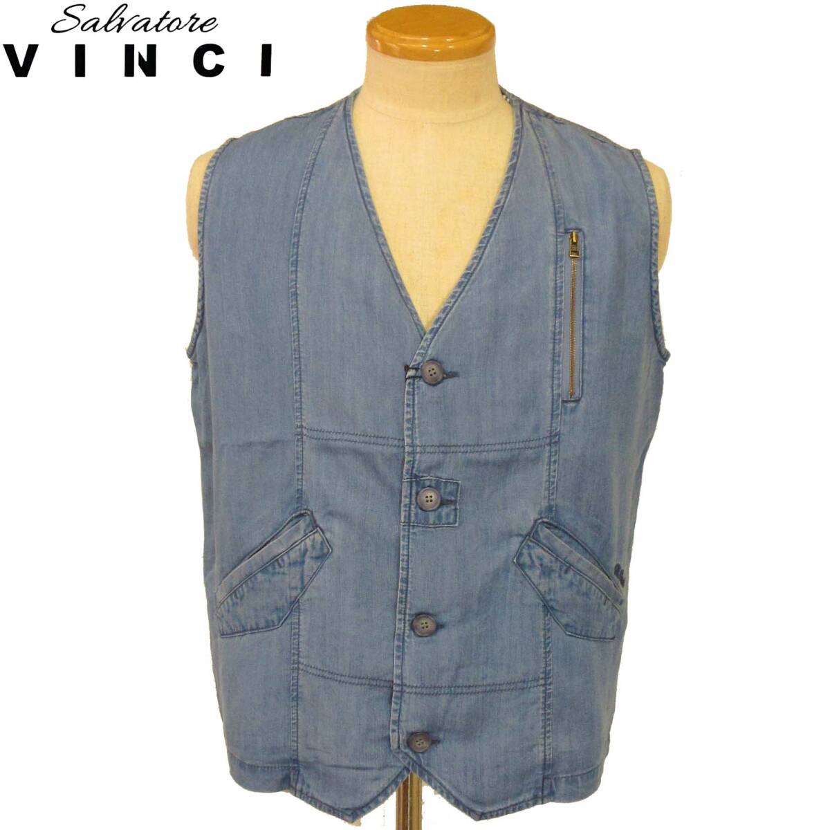 ★VINCI★SALE 薄手デニムベスト【ライトインディコLL】春夏モデル 41350229 サルバトーレビンチ