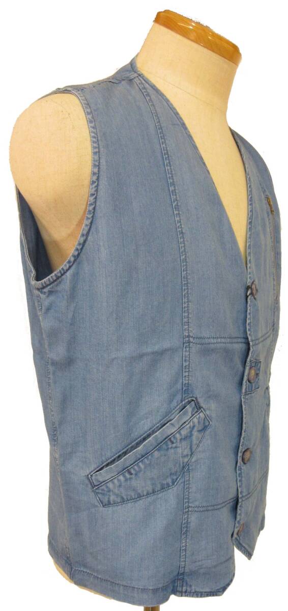 ★詳細 春夏モデル、デニムベストです。生地はセルロース100%のやや薄手。柔らかいデニム素材です。3シーズン着ていただけるタイプです。ポケット3つあります。