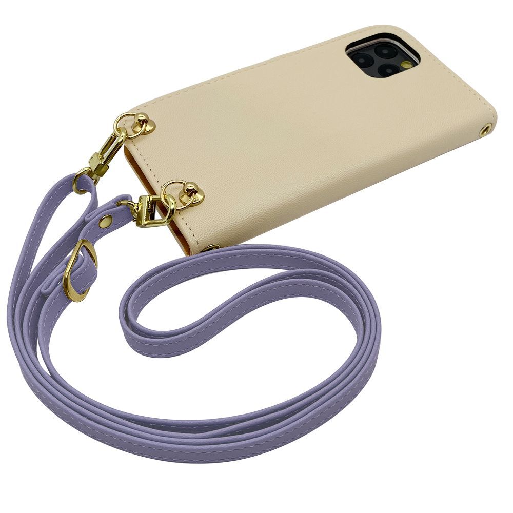 Pixel4 ピクセル4 スマホショルダー(手帳クリーム×ストラップ:アッシュラベンダー)カバー 手帳 くすみカラー