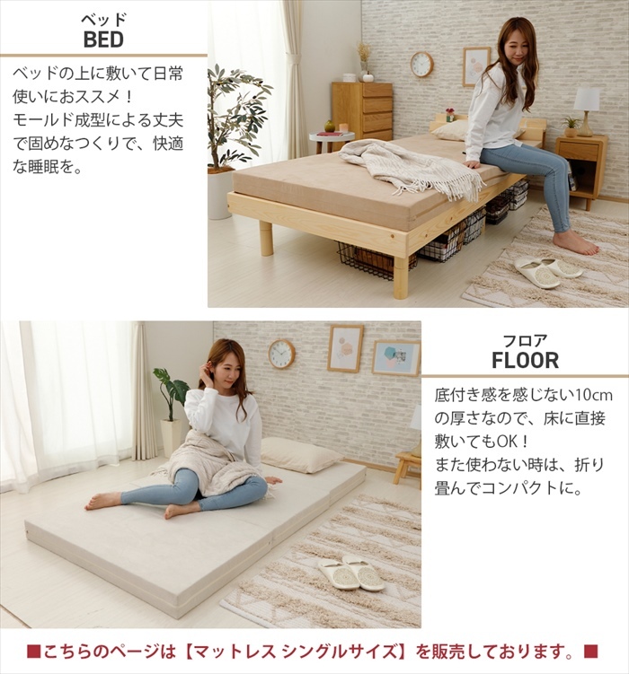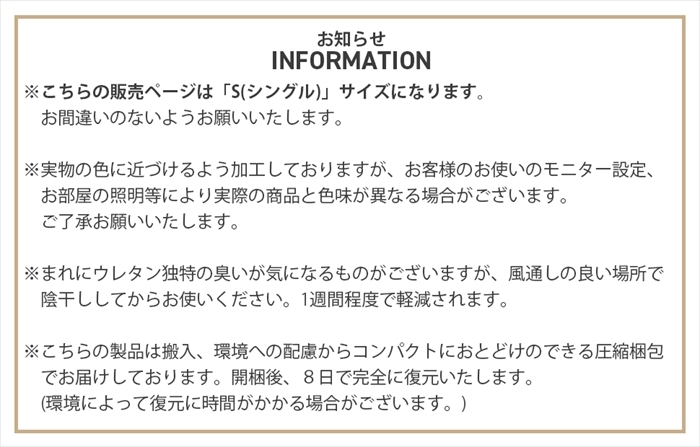 こちらの販売ページは「S(シングル)」サイズです。 マットレス単体の販売です。ベッドは付きません。 |