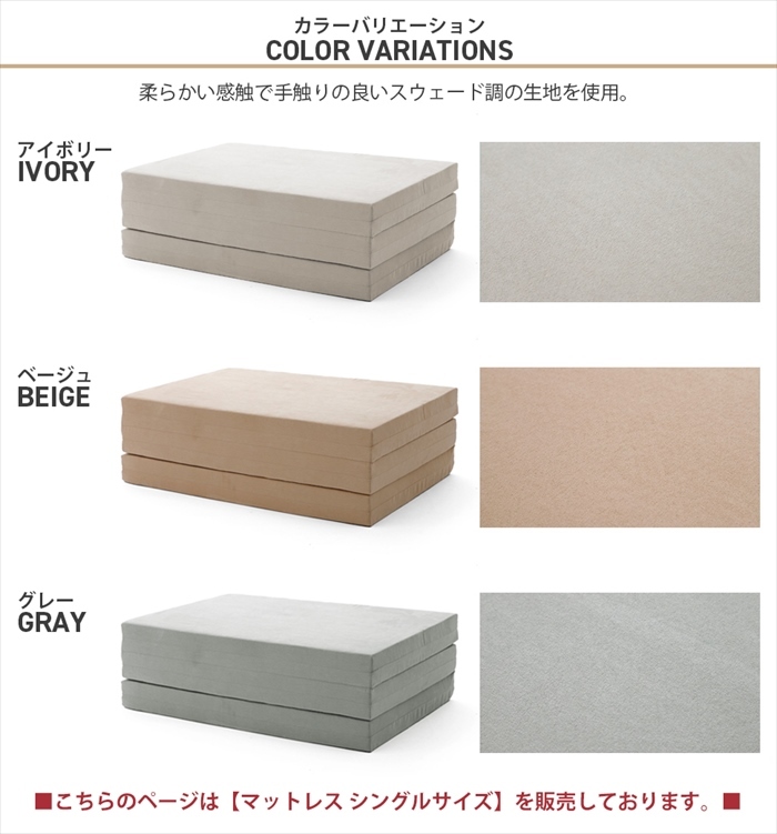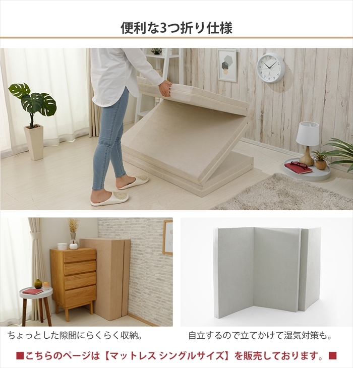 マットレス 寝る 眠る お昼寝 敷く 雑魚寝 床で寝る 折り畳み 折りたためる 折りたたむ 3つ折り 三つ折り 収納 たたむ たためる 沈み込みにくい ウレタン 寝心地 快適 自立 スウェード 日本製 職人仕上げ お昼寝 ベッド 固め 硬め 丈夫 直置き 床 シングル 寝室 ベッドルーム 客室 民宿 アパート マンション リビング 一人暮らし 単身 転勤族 転勤 1人暮らし ワンルーム 狭い部屋 ミニマリスト |