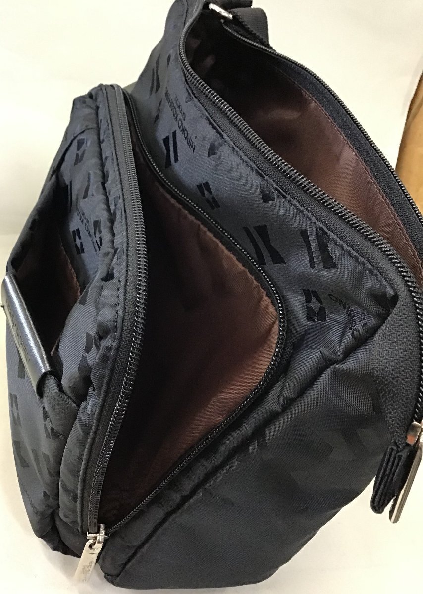 送料無料 多収納 HIROKO KOSHINO ショルダーバッグ ブラック 地模様柄 軽量 斜め掛けOK ヒロコ コシノ 4510