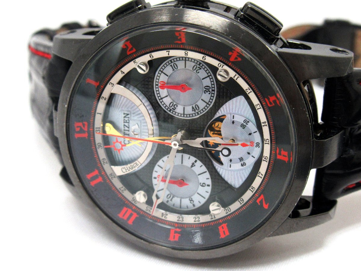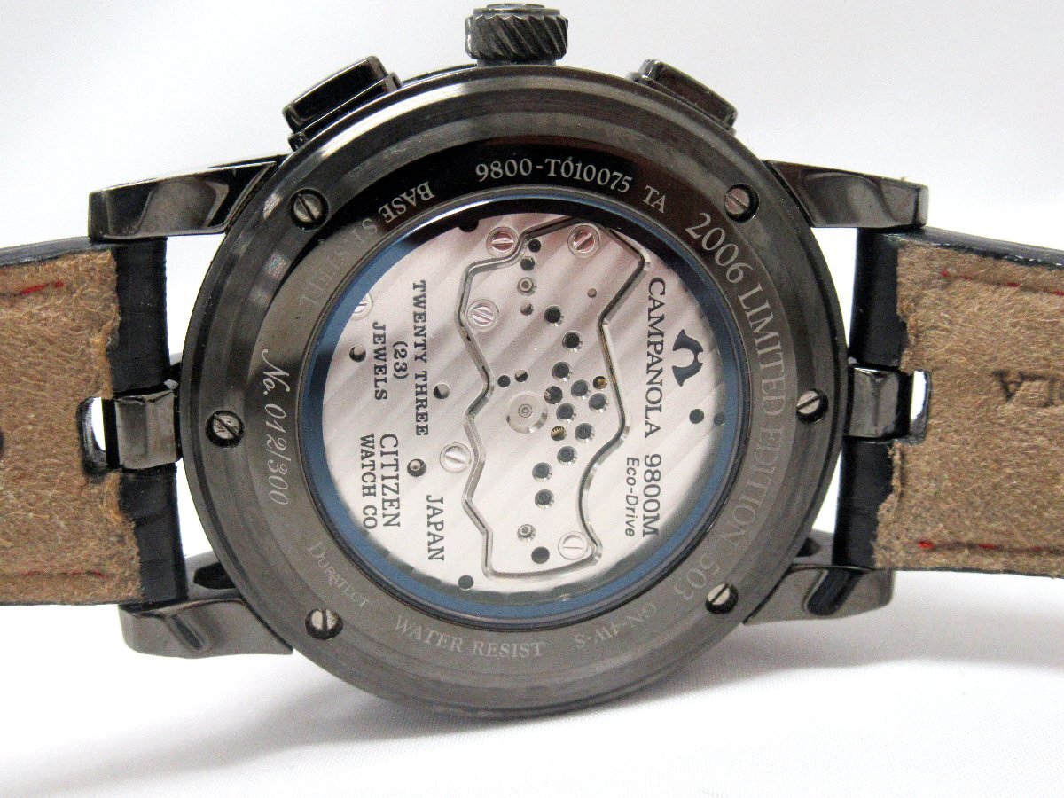 【商品名、メーカー(ブランド)名】CITIZEN シチズン CAMPANOLA 2006年 限定 300本 メンズ 腕時計 【品番、型番、表記サイズ】9800-T010075 GN-4W-S 012/300 【商品について】ケースサイズW約:42.2mm(リューズ含む) カラー:ブラックベース 素材:ステンレス×レザーベルト 仕様:ソーラー 腕周り約:14.5cm~19cm 【付属品】なし 【状態ランク・商品状態】※当店査定基準参考下さい。Bランク 少々のスレ、くすみ、小さなキズがございます。 ベルトには多少の使用感がござます。可動に問題はありません。 中古品です。写真、内容をご参照しご理解のある方のご入札をお願いします。 【梱包サイズ】※送料は下記の『◆送料について』をご参照下さい。ヤマト宅急便コンパクト 500円 (沖縄900円)