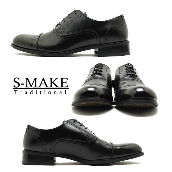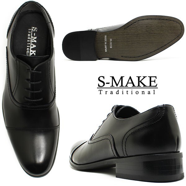 箱付き新品★日本製x本革/S-MAKE★ストレートチップ【27.0EEE/黒】歩きやすい!名ブランド品質ビジネスシューズ/冠婚葬祭にも◆n7318