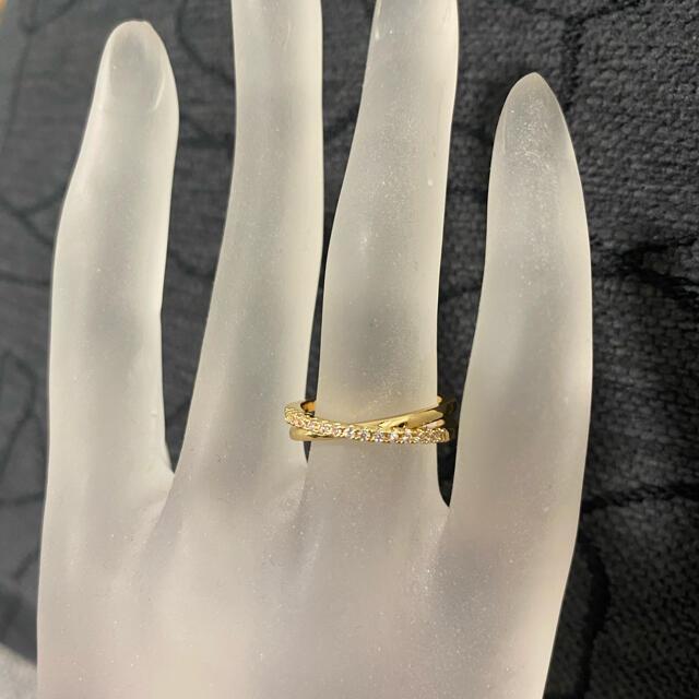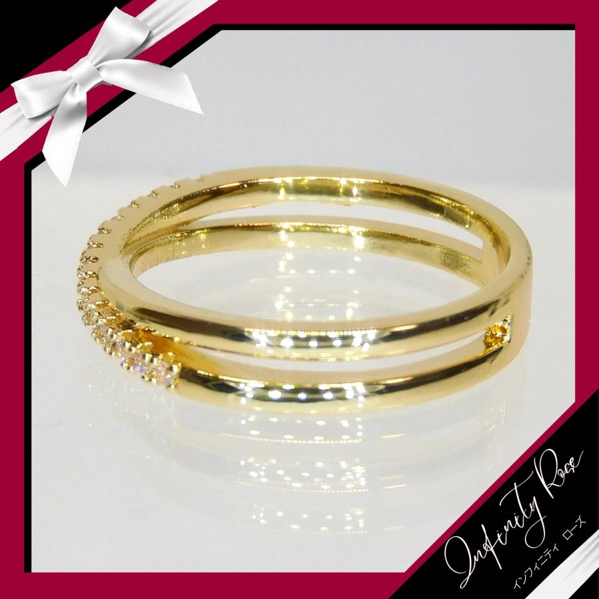 (1110)14号 ゴールド豪華エンゲージリングクロス高級デザインリング 指輪 スワロフスキー製クリスタル使用