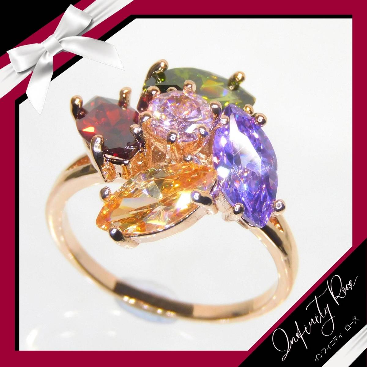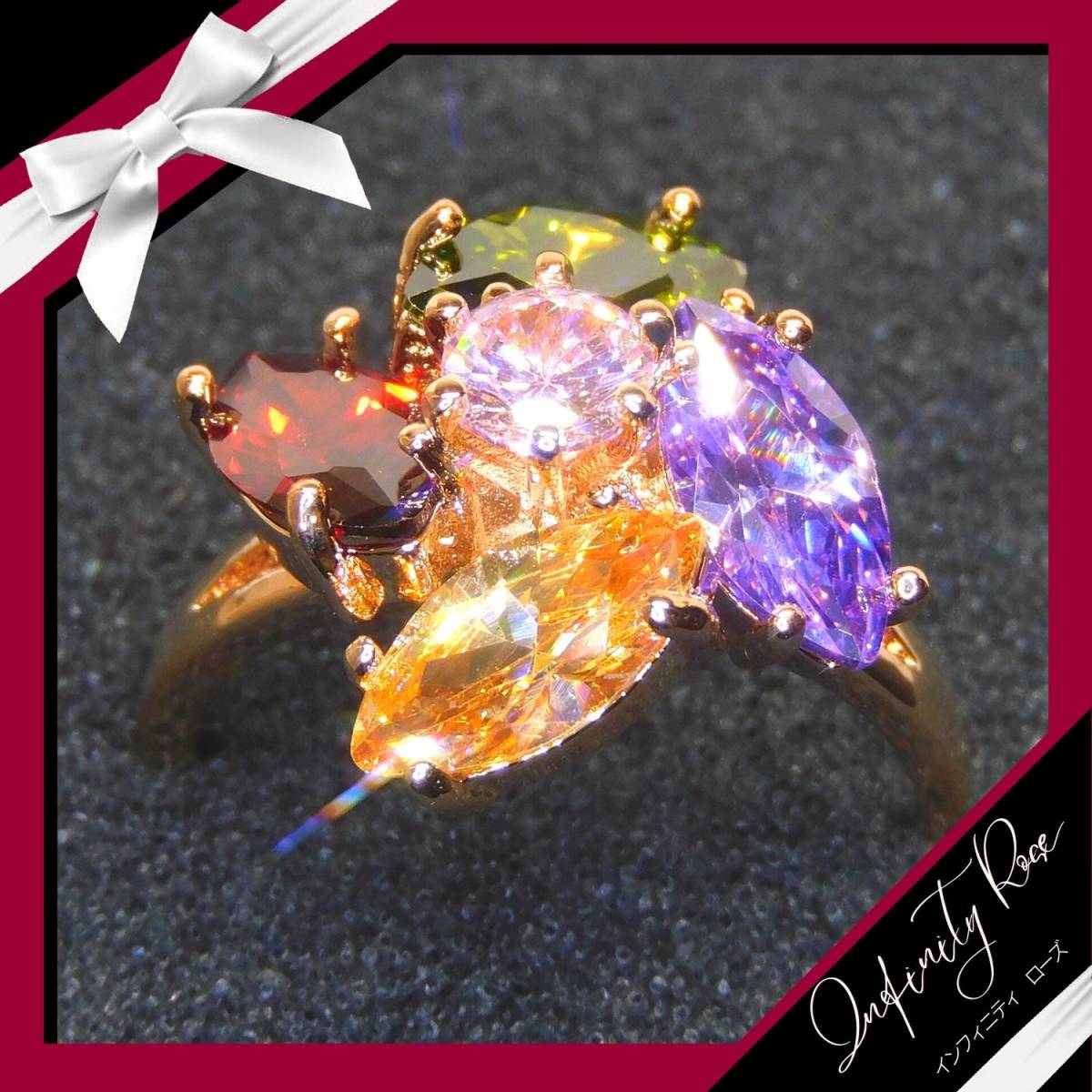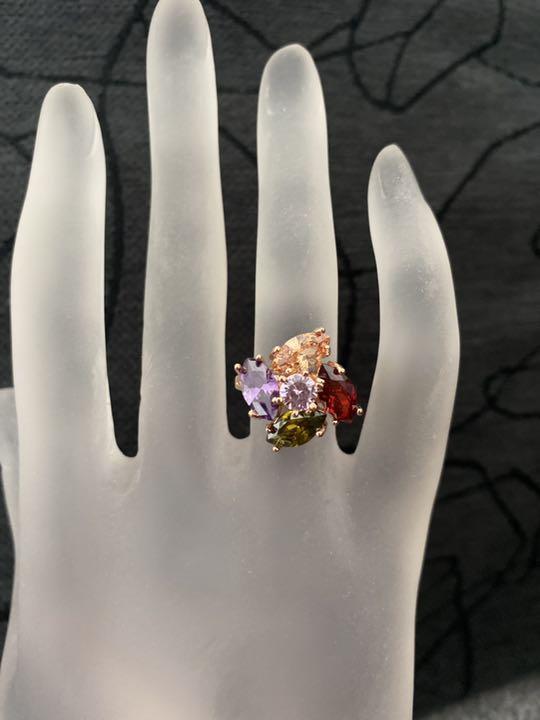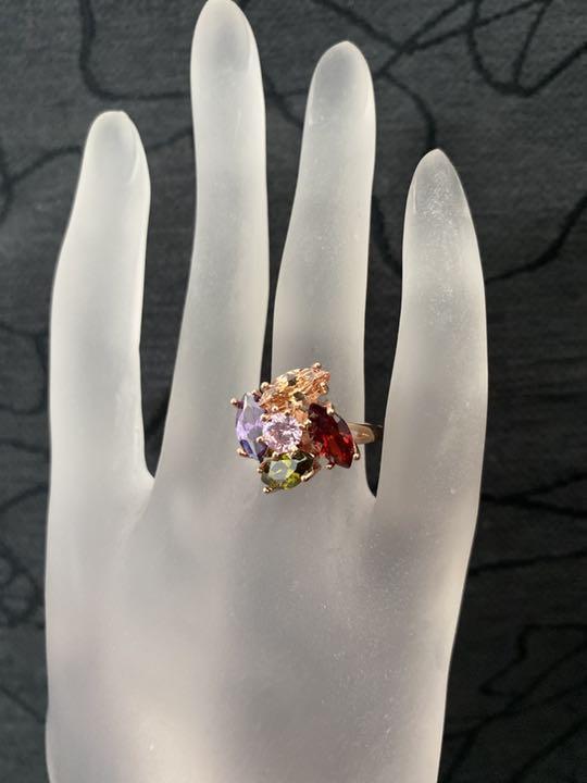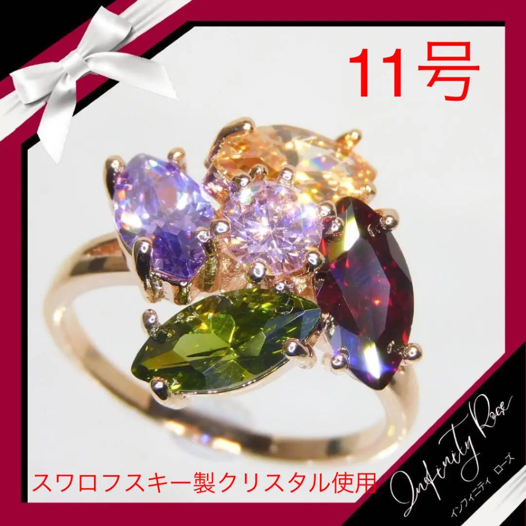 (1142)11号 ランダム 大きめクリスタル 高級フラワー爪留め カラフルリング 指輪 スワロフスキー製クリスタル使用