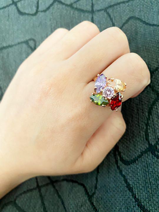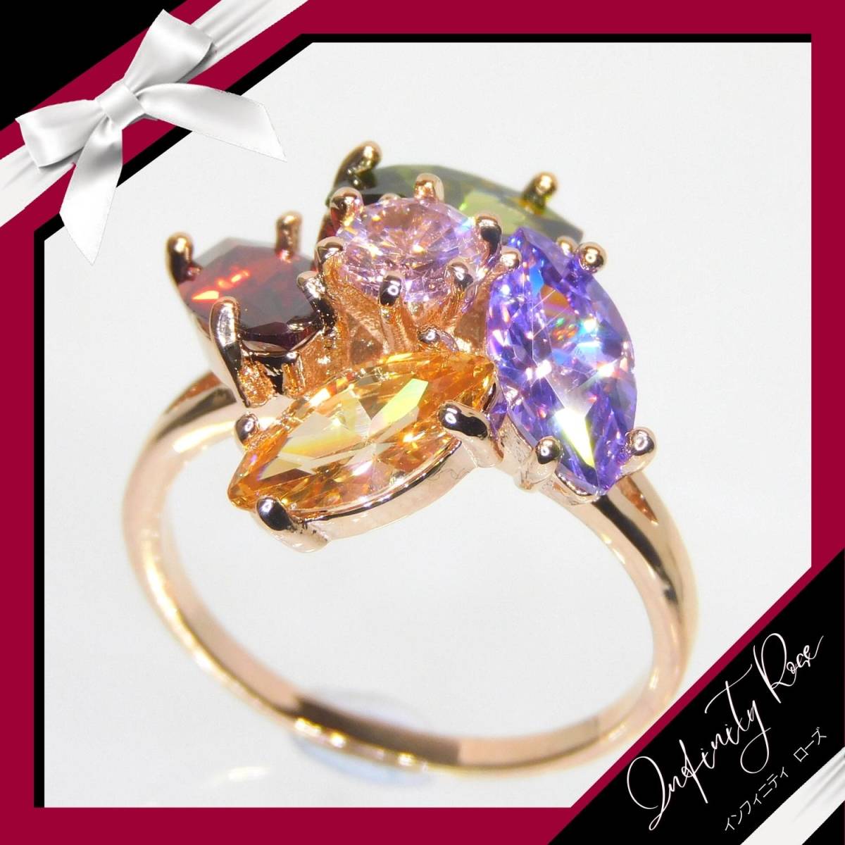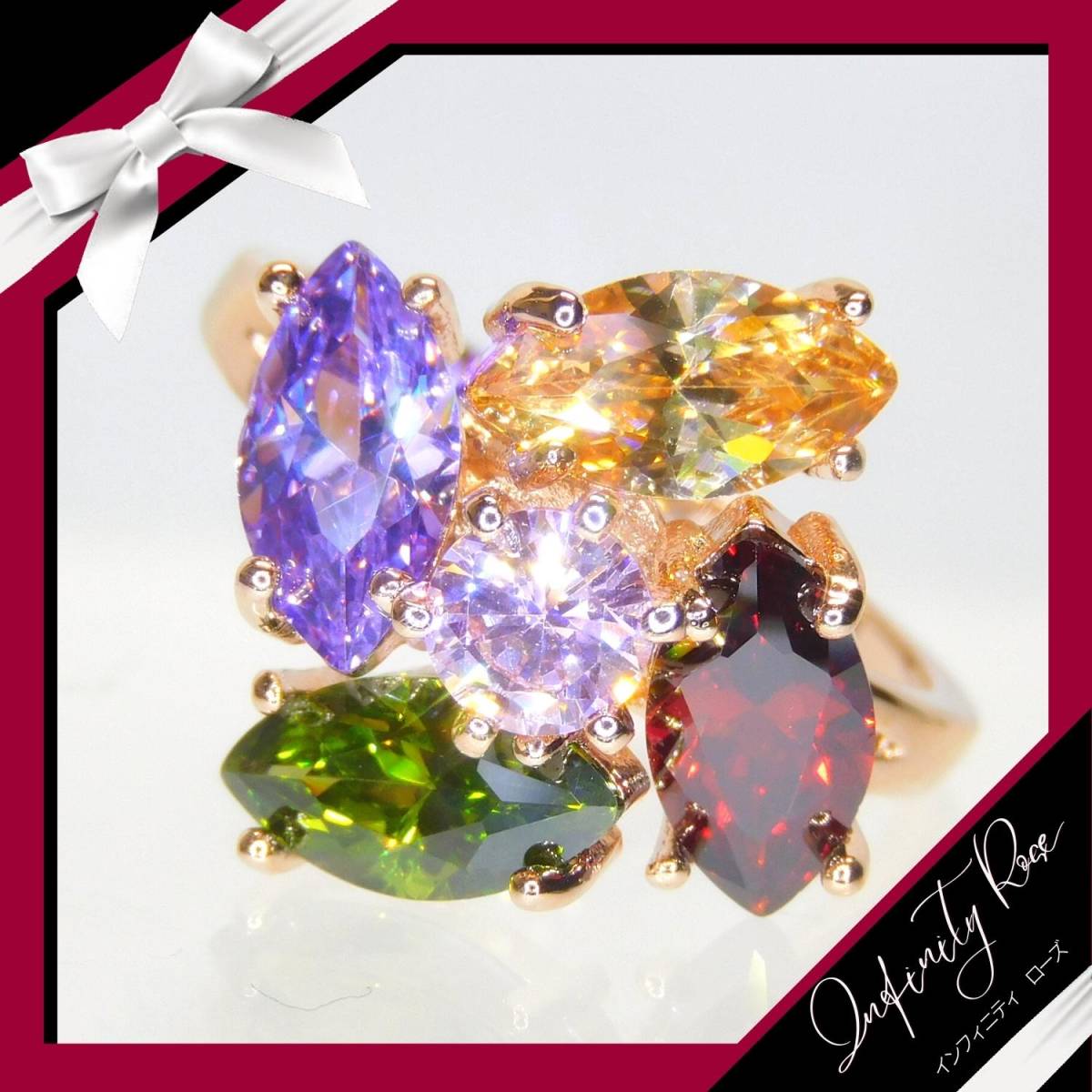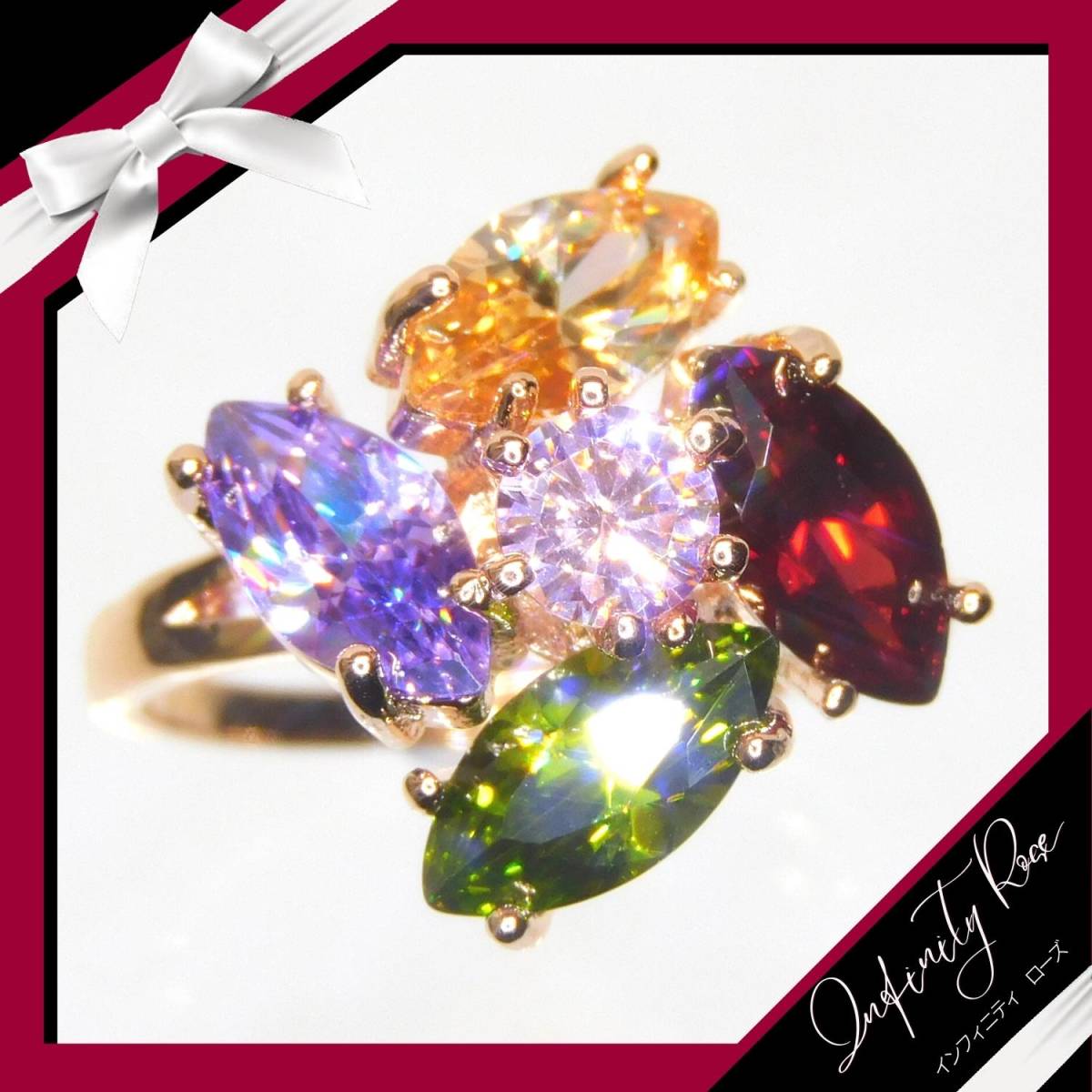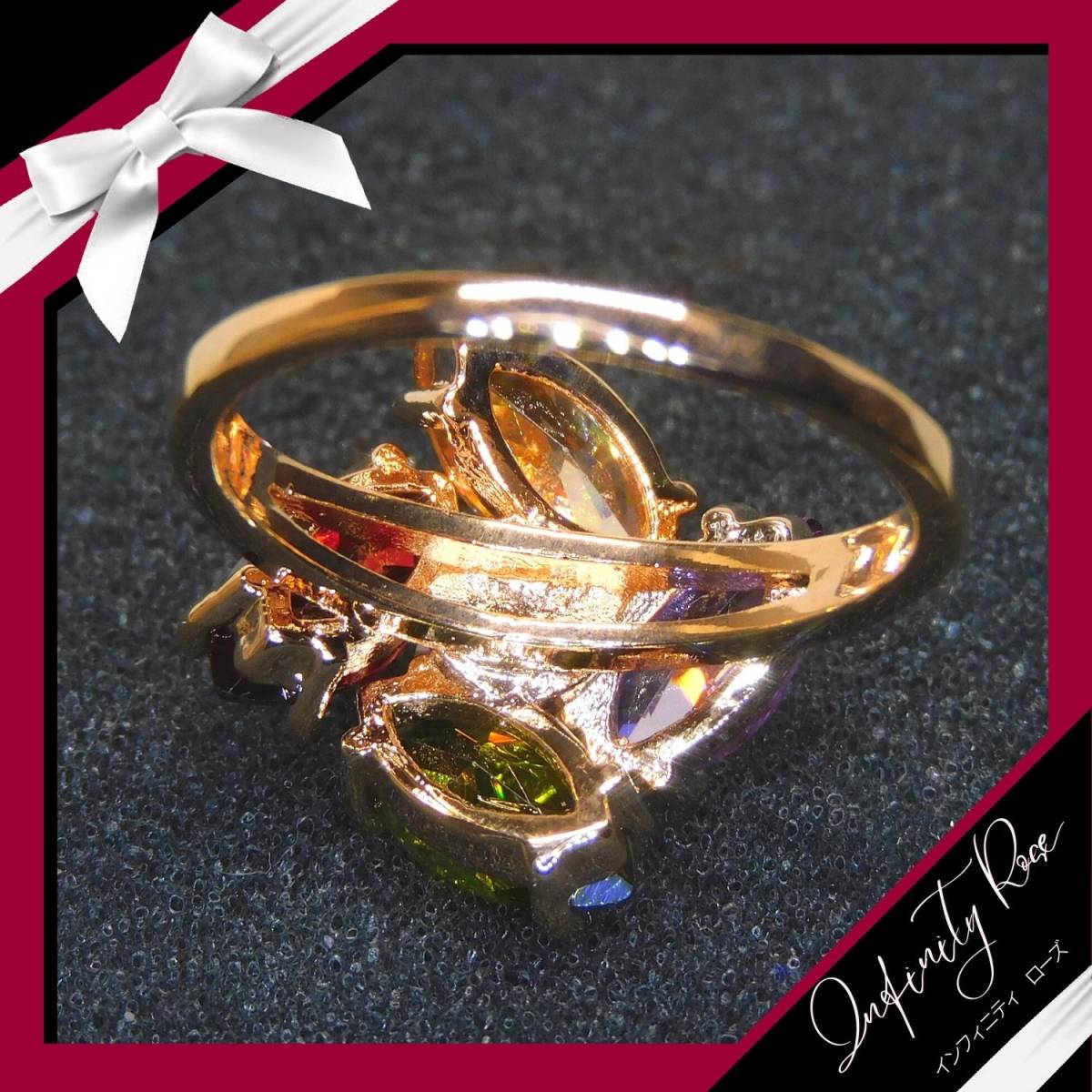 (1142)11号 ランダム 大きめクリスタル 高級フラワー爪留め カラフルリング 指輪 スワロフスキー製クリスタル使用