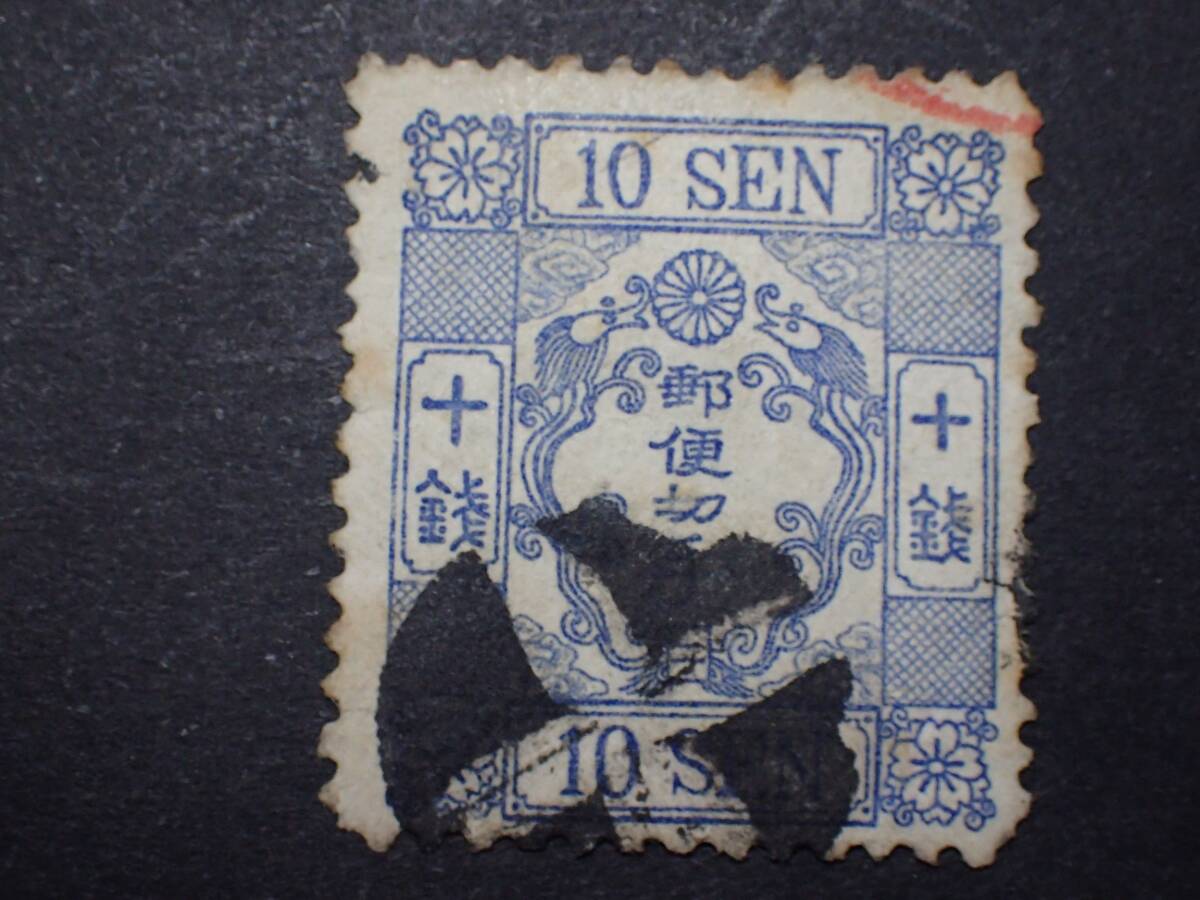 ◆ 手彫 桜 改色カナ入り 十銭 「ニ」使用済 並品 ◆