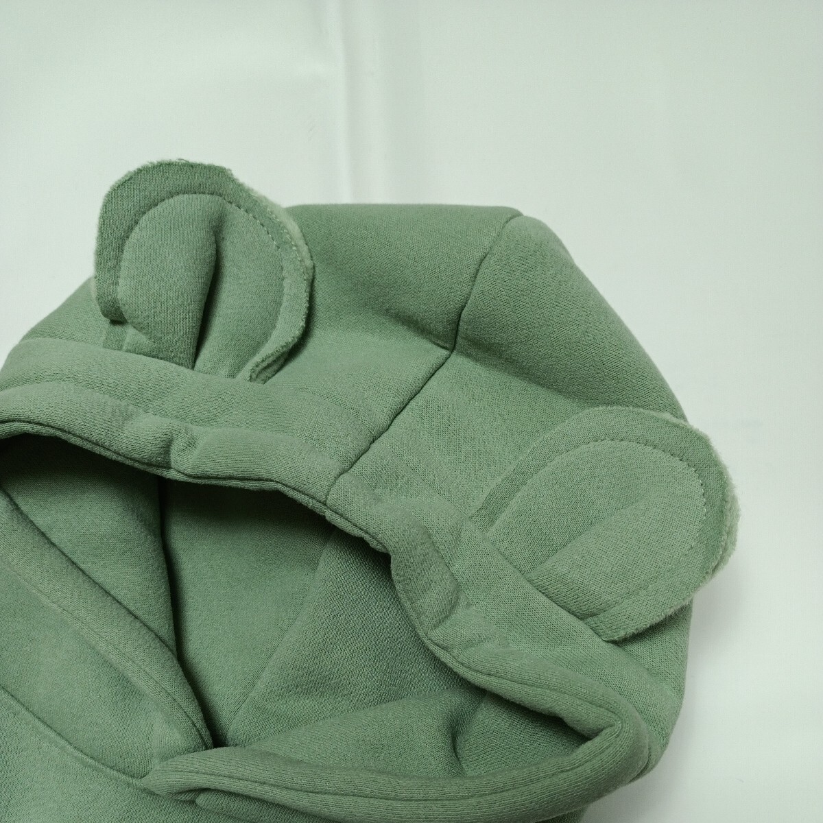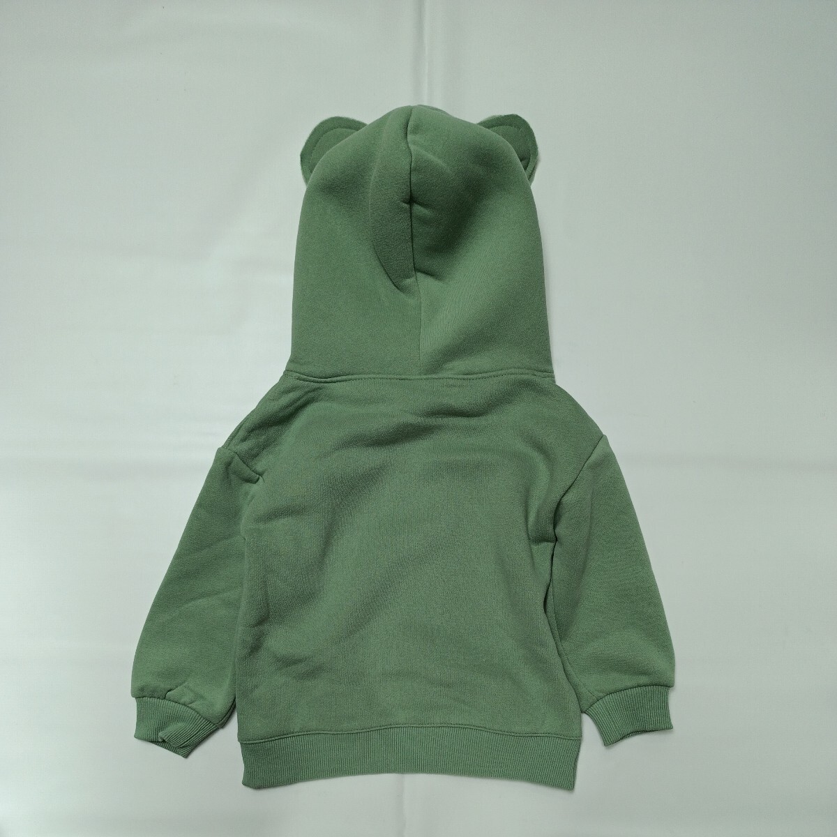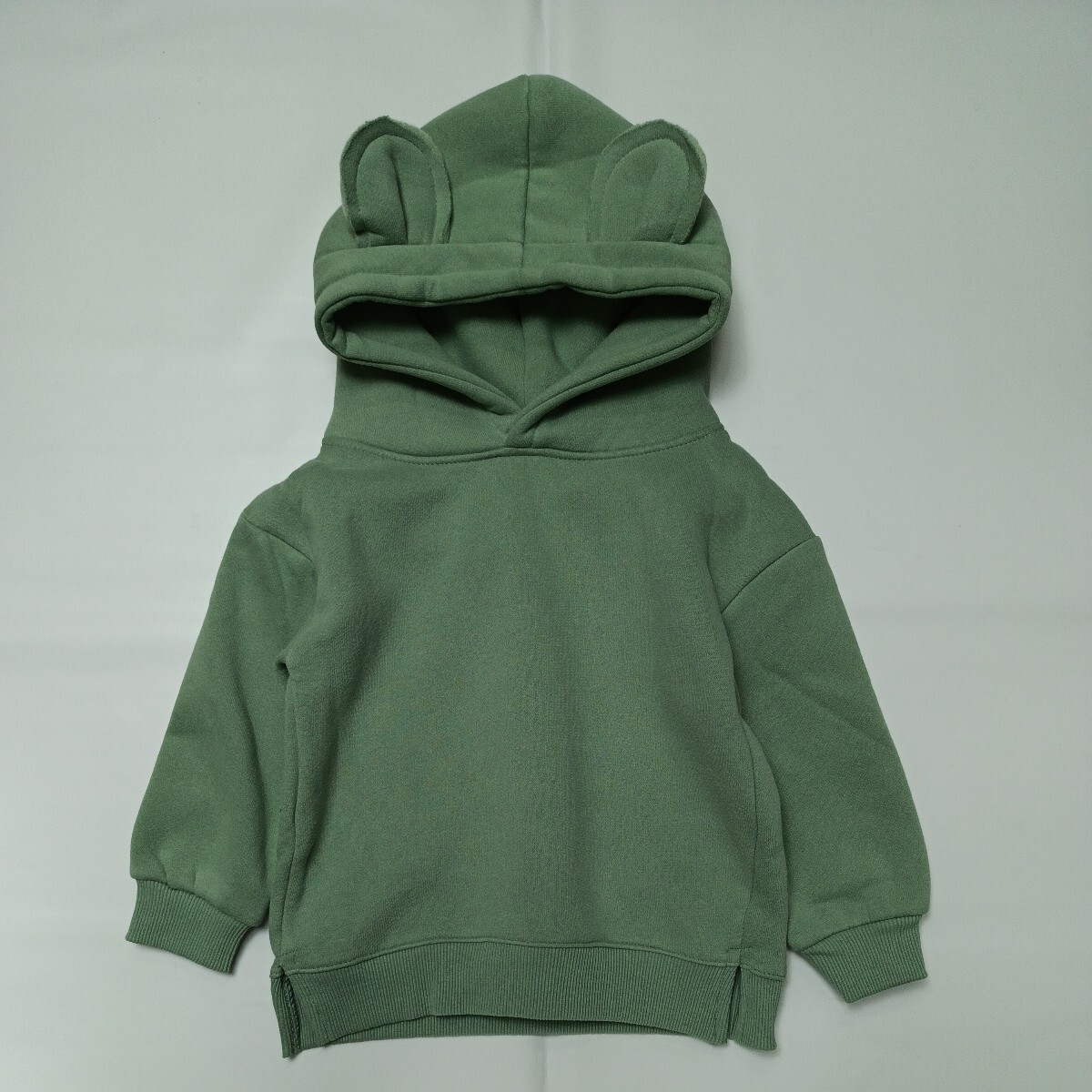 【緑】【未使用】 100 子供服 子供 男の子 女の子 長袖 トップス トレーナー フード 耳 クマ耳 かわいい カラフル シンプル 無地