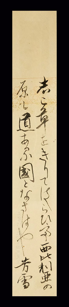 紙本肉筆未装短冊1葉 金砂子散料紙 作品寸法:36.2cm x 6.0cm 作品状態:良好な保存の品です。 萩野由之(はぎの-よしゆき) 1860-1924。明治-大正時代の国文学者,日本史学者。万延元年4月17日生まれ。字(あざな)は平作、礼卿、和庵、金島、桜子、芳雪、不斎 、和、秋錦堂、和菴など。 学習院教授をへて,明治34年東京帝大教授。和歌改良論をとなえ,多数の古典文学の注釈書をあらわす。古代史,維新史に精通した。大正13年2月1日死去。65歳。佐渡(新潟県)出身。帝国大学卒。著作に「国学和歌改良論」(共著),「日本史講話」など。 出典:講談社『デジタル版 日本人名大辞典+Plus』他 |