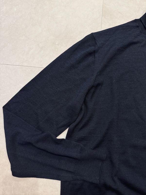 イタリアンファッションの話題を独占 TAGLIATORE(タリアトーレ)は1960年代に創業したLERARIO(レラリオ)社が母体となり、二代目のPino Lerario(ピーノ・レラリオ)が立ち上げたブランドです。 柔らかなシルク混のヴァージンウールは滑らかさと控えめな光沢感があり、高密度に編まれたハイゲージのニットは非常に柔らかく抜群な着心地に仕上がっております。 その肌触りの良さは多くのリピーターに支持されていることからも分かる通り、素肌に着用してもストレスをほとんど感じさせません。 軽量でありながら保温性の高い素材を贅沢に使用しており、編み目が非常に細かく詰まっているため一目で高級感がわかるアイテムです。 シルエットは体にフィットするコンパクトなシルエットを採用し、モダンでスタイリッシュなイメージに仕上げてあります。 袖や裾の細いリブの洗練されたシンプルなデザインは、単体での着用からジャケットやコートのインナーとしても対応します。 心地がよいだけでなく、型崩れもしにくいため、シーズンを問わずの定番アイテムとして長く着用することができるタートルネックセーターです。 品名 :TAGLIATORE / タリアトーレ 素材:ラナヴァージンウール70% シルク30% 表記サイズ :54 着丈:64cm 袖丈:66cm 肩幅:44cm 身幅:56cm ※実寸値となりますが誤差はご了承ください。 ※迅速なお取引を心がけさせていただいております。オークション終了より24時間以内にご連絡をいただけない場合、土日祝日を除き48時間以内にお支払い手続きをいただけない場合は、お取引の意思なしと判断させていただき取引キャンセルとさせていただきます。 万が一上記が不可の場合は事前にご連絡いただくか、入札をお控えいただきますようお願い申し上げます。 ※なるべく現物に近いお色味で撮影するよう心掛けておりますが、閲覧環境の違い等によって違いが出る場合があります。 差し替えトラブルを避ける意味でも上述した旨含め、イメージと違う等での返品は受け付けておりません。 百貨店並みのサービスを求める方や神経質な方の入札はお控えいただきますようお願い申し上げます。 また、差替えやSNS使用後の返品等を防止するためためにも、原則返品には応じられません。 疑問点や心配事等がある場合は入札前に質問欄にてお問い合わせください。 ※当方が出品するすべての商品は間違いなく本物ブランド品となりますので、安心してオークションにご参加ください。 万が一、第三者等により偽物と判断された場合、商品の返品、お支払いただきました全額を返金をいたします。 |