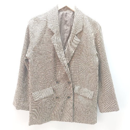 ◇ ing イング ダブルボタン 千鳥柄 ポケットあり 長袖 ジャケット サイズM ブラウン レディース E
