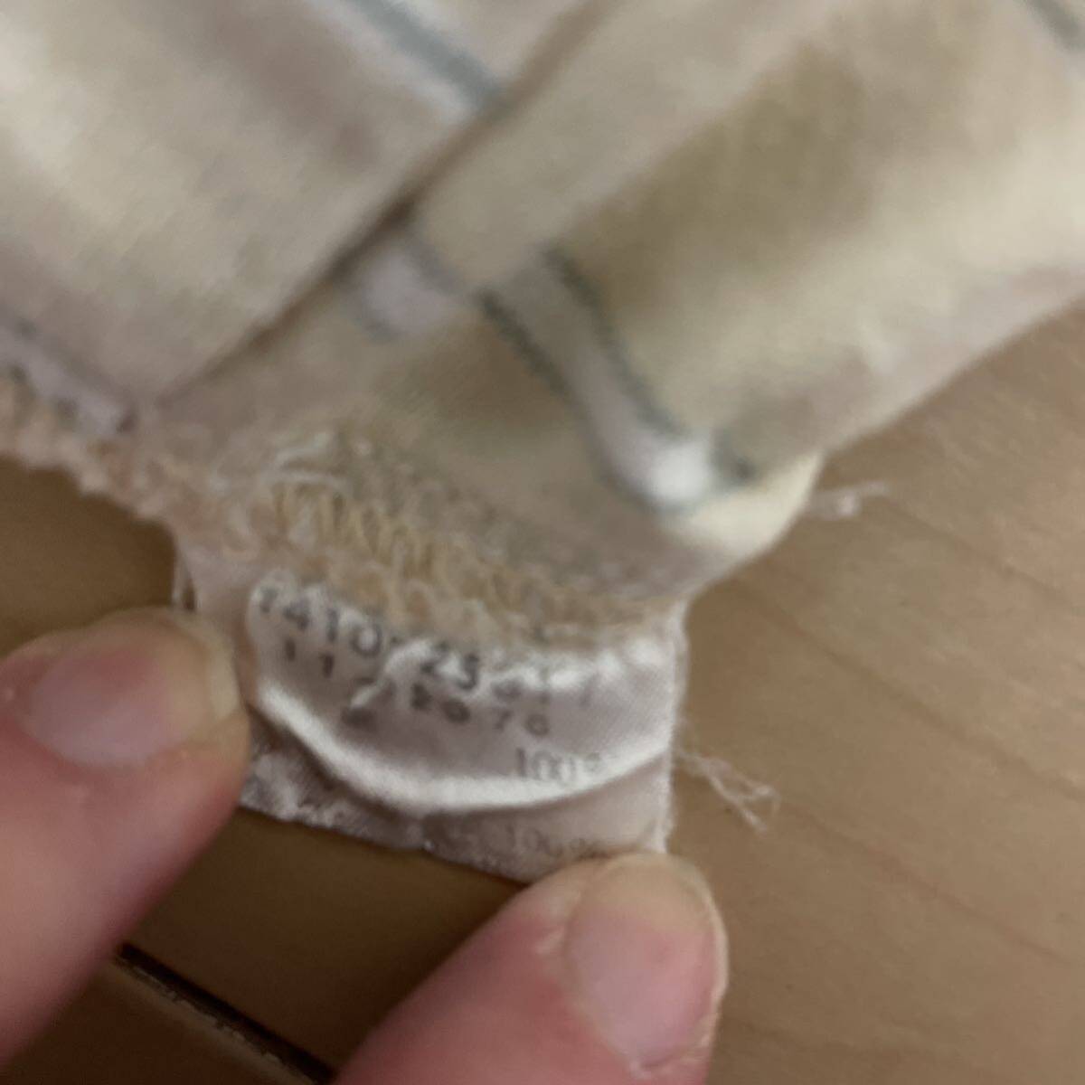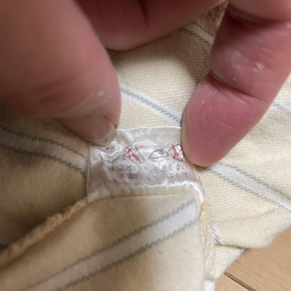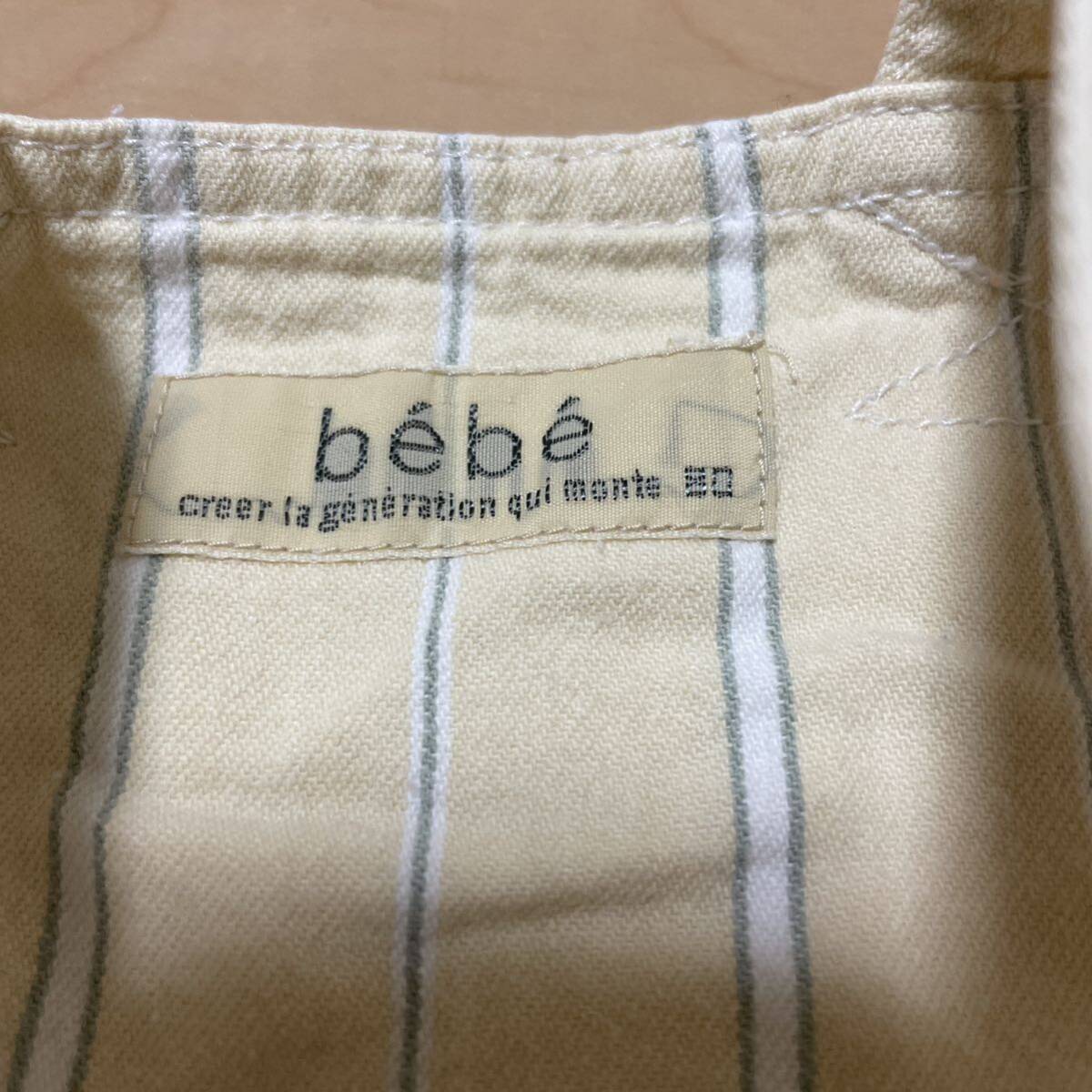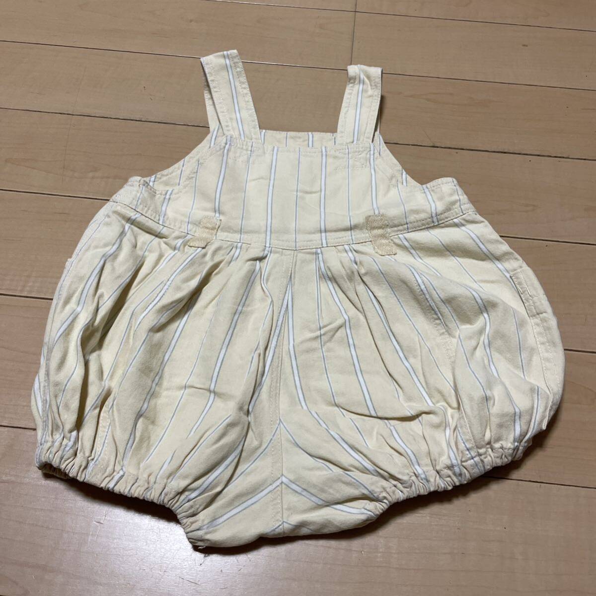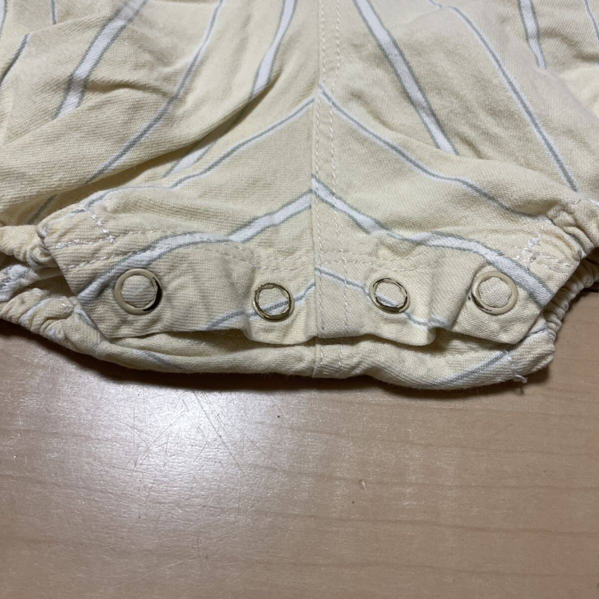 淡い黄色にストライプが爽やかなbebeのロンパースです。