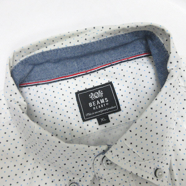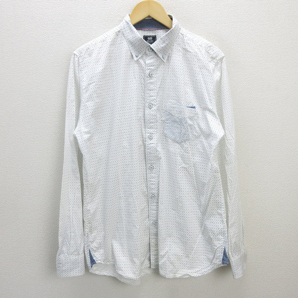 D■ビームス/BEAMS 総柄長袖シャツ/ボタンダウン【XL】白/MENS/131【中古】
