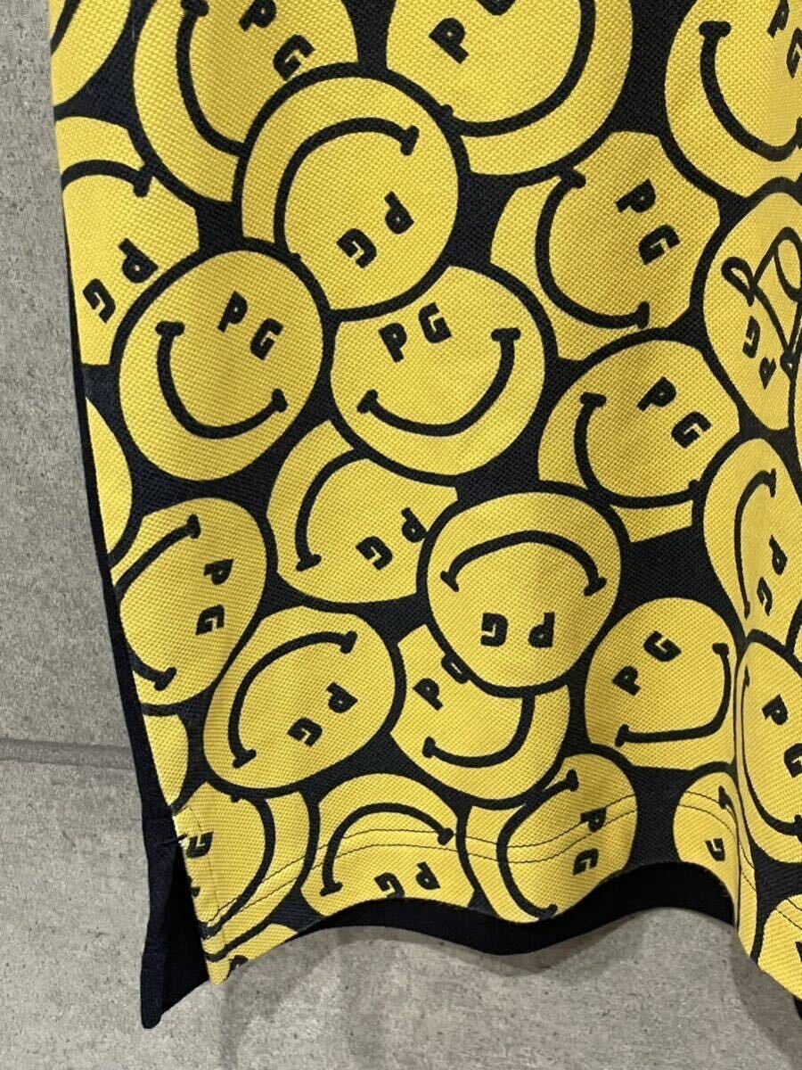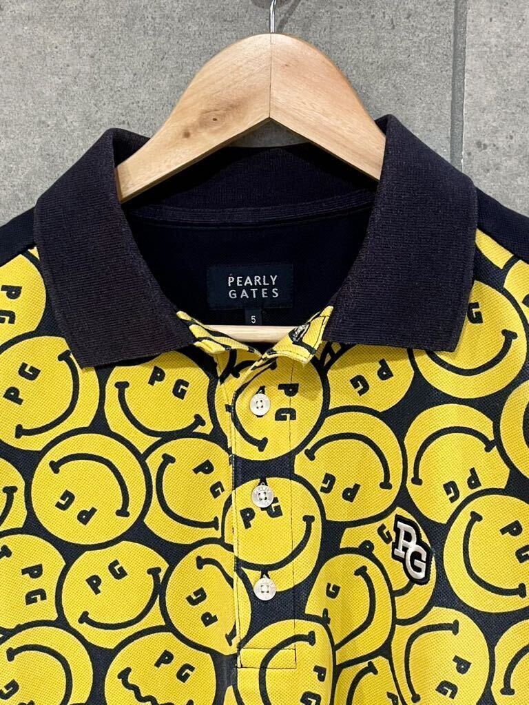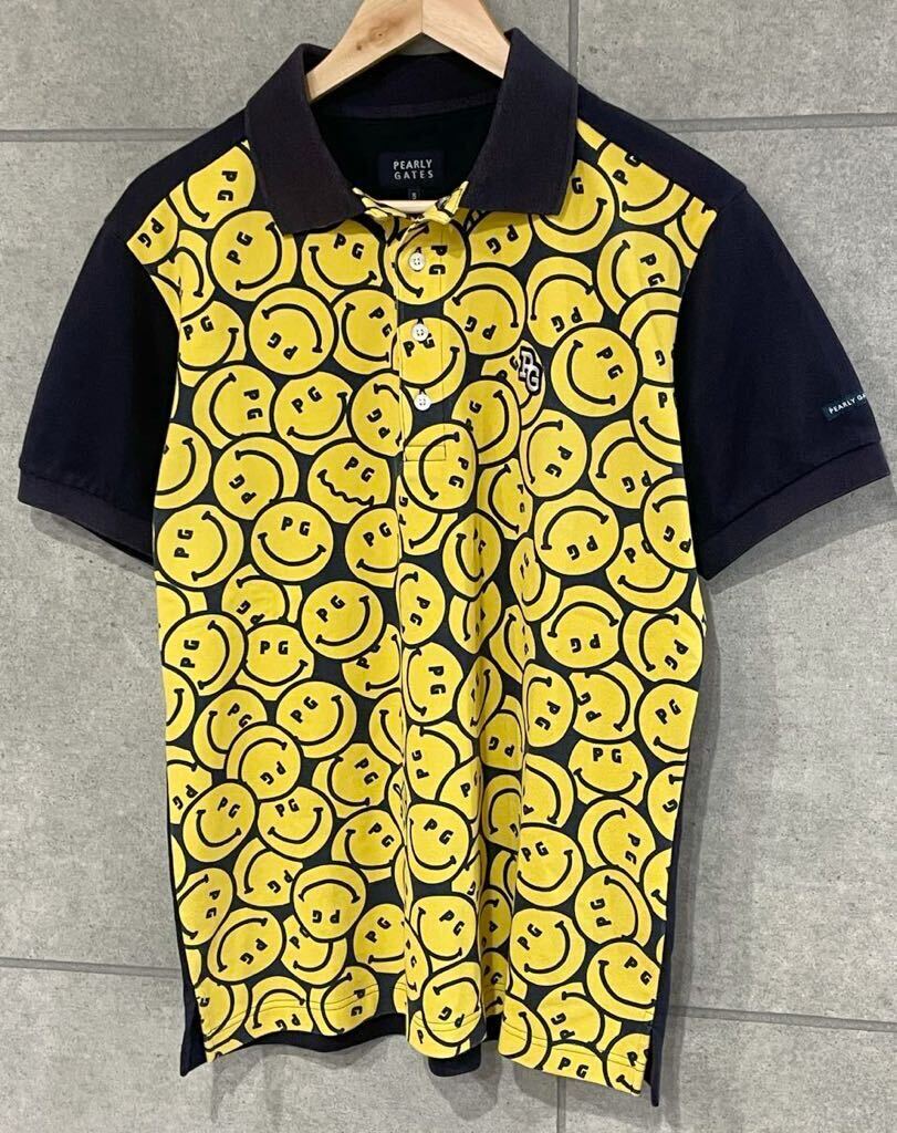 希少デザイン! PEARLY GATES パーリーゲイツ PGニコちゃん 総柄 吸汗速乾 半袖ポロシャツ ネイビー 5サイズ メンズ ゆうパケ可 ○ 新規×