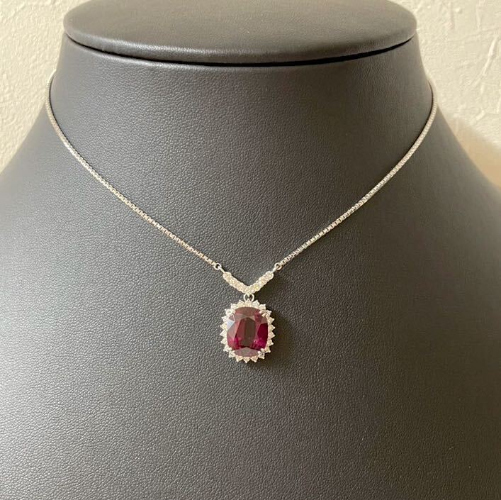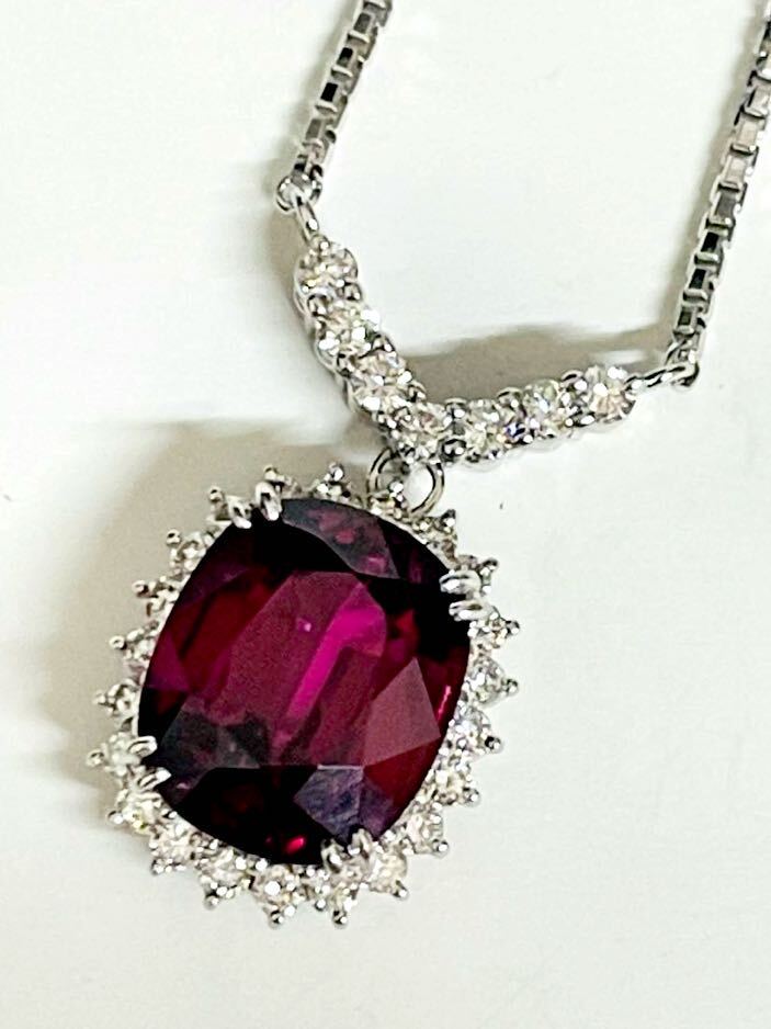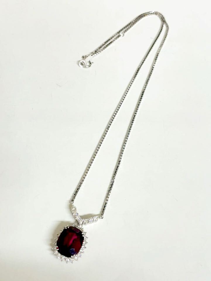 こちらは、Pt850ベネチアン柄チェーンにPt900台にロードライトガーネット1石&ダイヤ29石付きプチネックレスです。