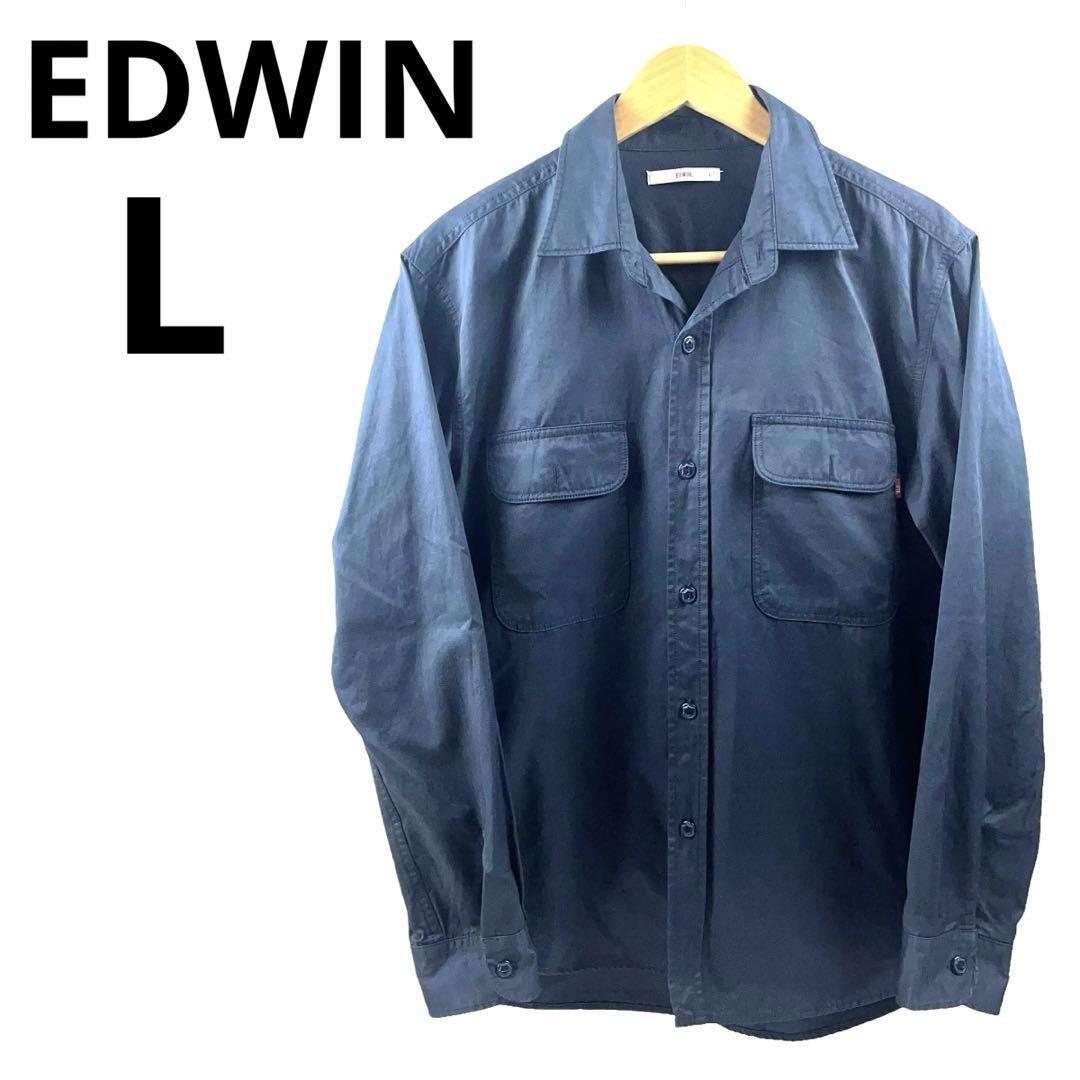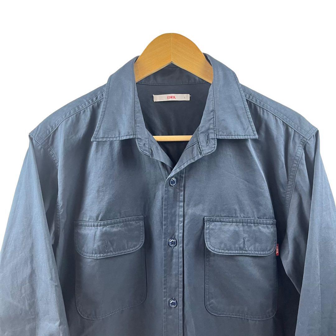 エドウィン EDWIN ワークシャツ 無地 長袖 両胸フラップポケット Lサイズ