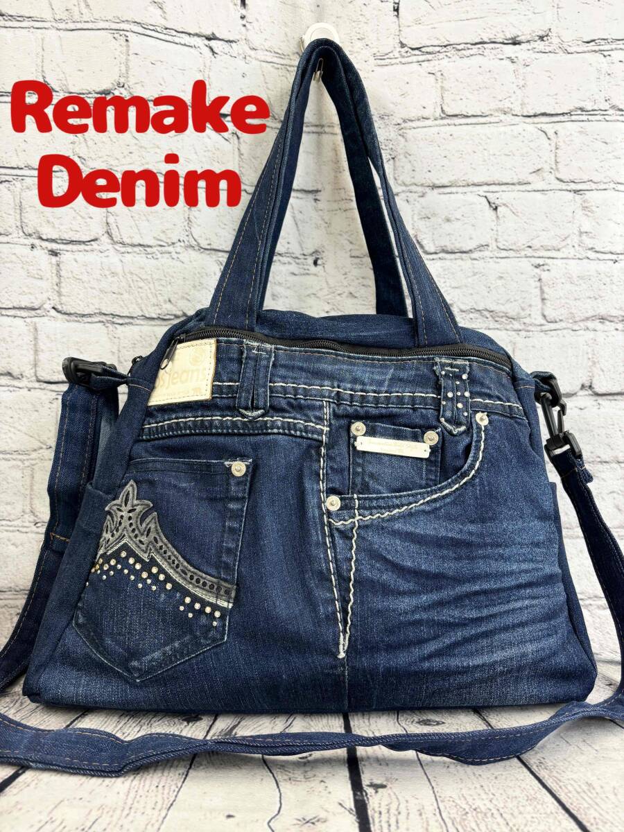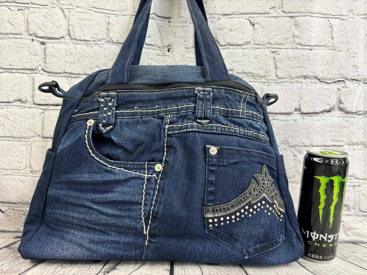訳あり ★2way★ 【一点物】 ショルダーバッグ デニムバッグ リメイクデニム ハンドメイド ダメージデニム トートバッグ 肩掛け キラキラ ストーン